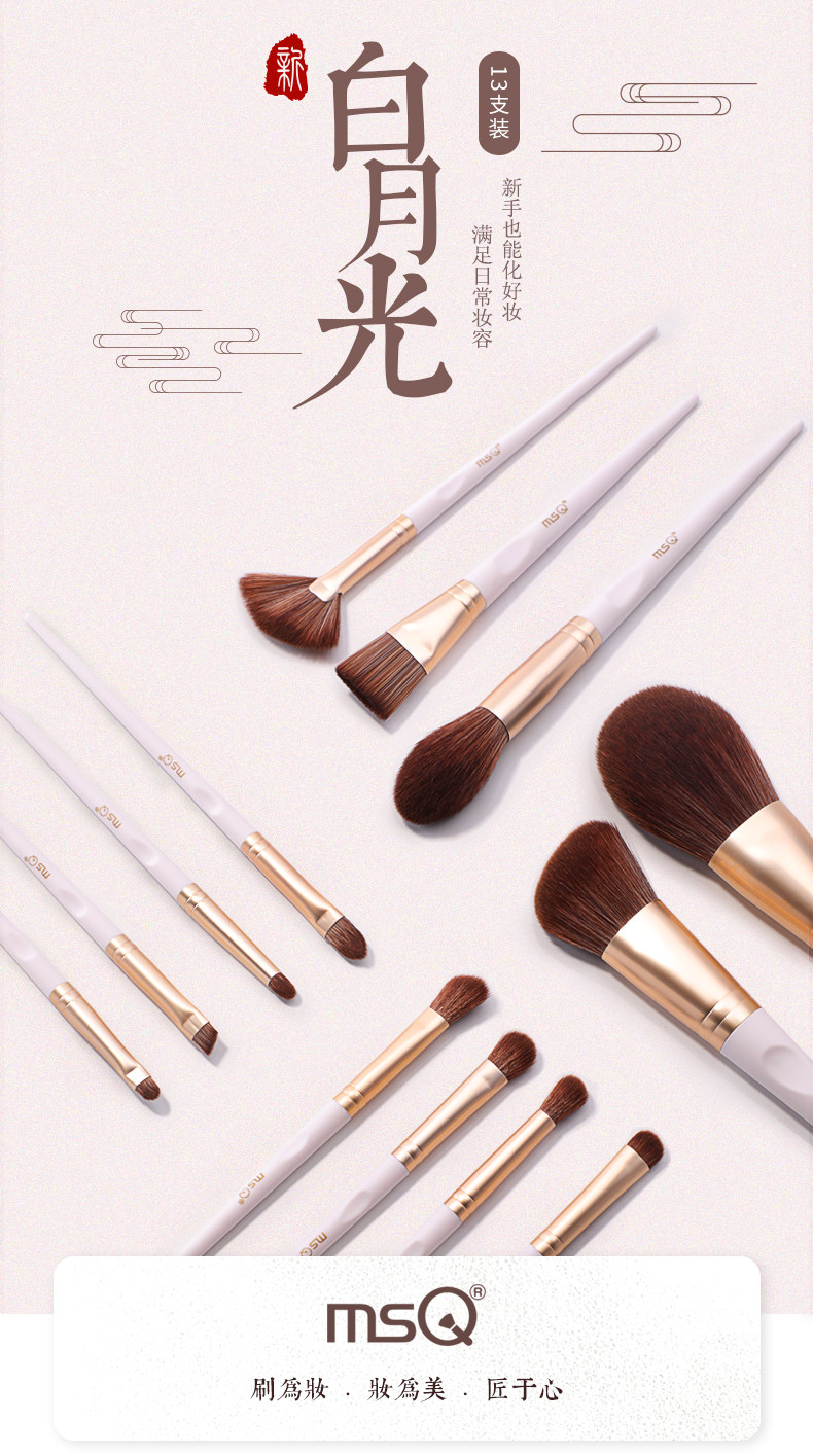 MSQ / Magic Silk Kou 13 белый Кисть для макияжа Moonlight комплект полностью Набор кистей для век щек красный Косметическая кисть для рассыпчатой пудры