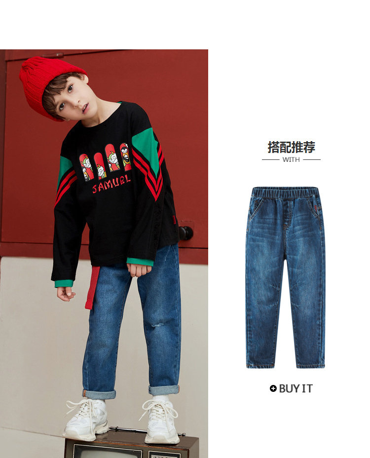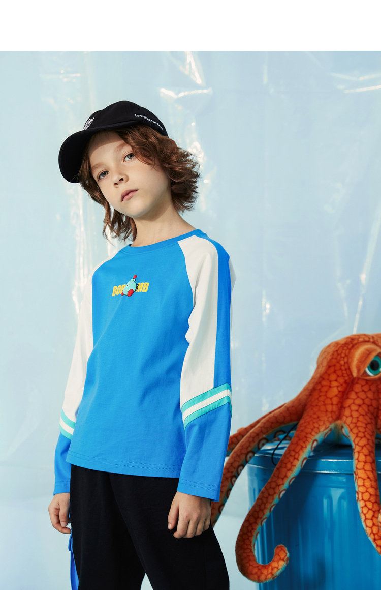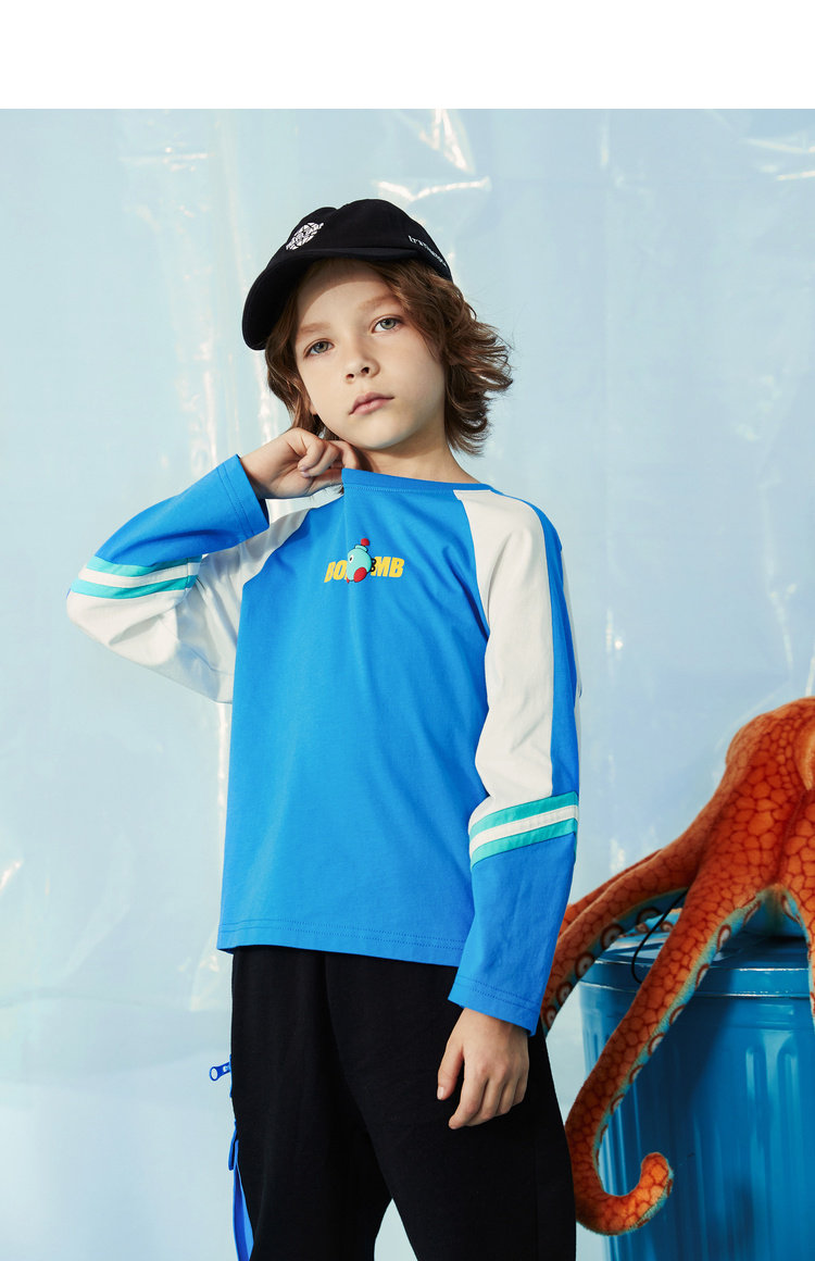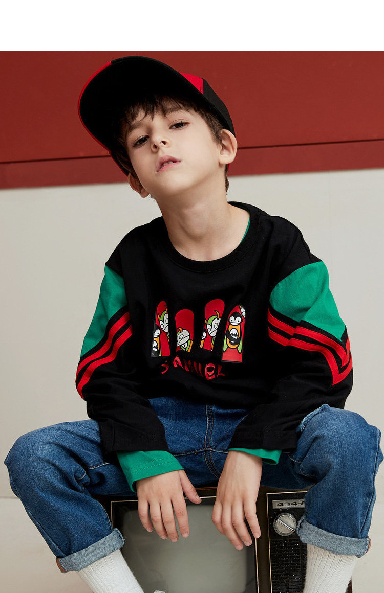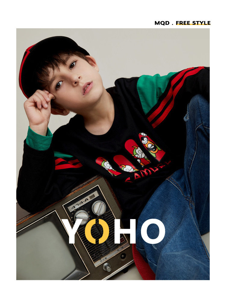 MQD на мальчика длинный рукав Футболка чистый хлопок детские Шить новая коллекция Средние дети свободные печати популярный спортивный верх Одежда