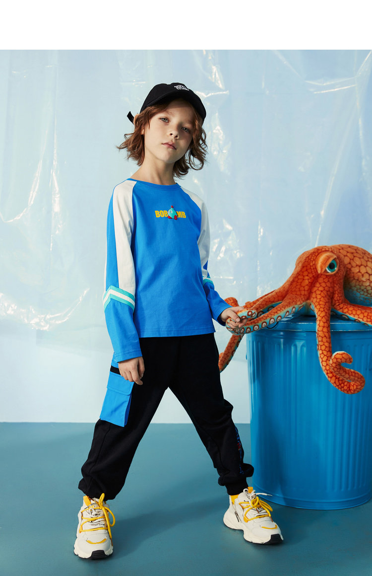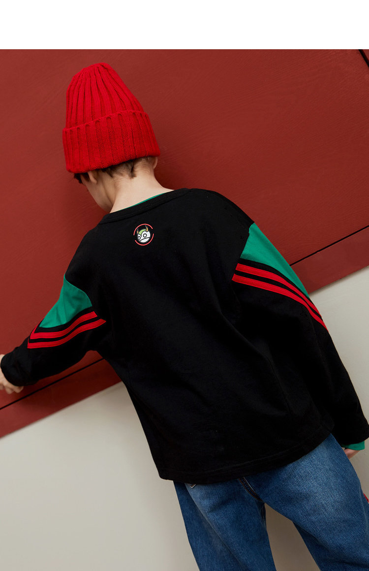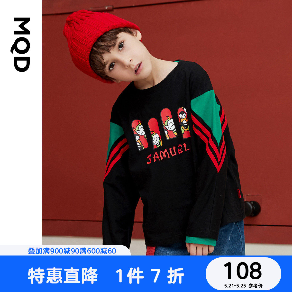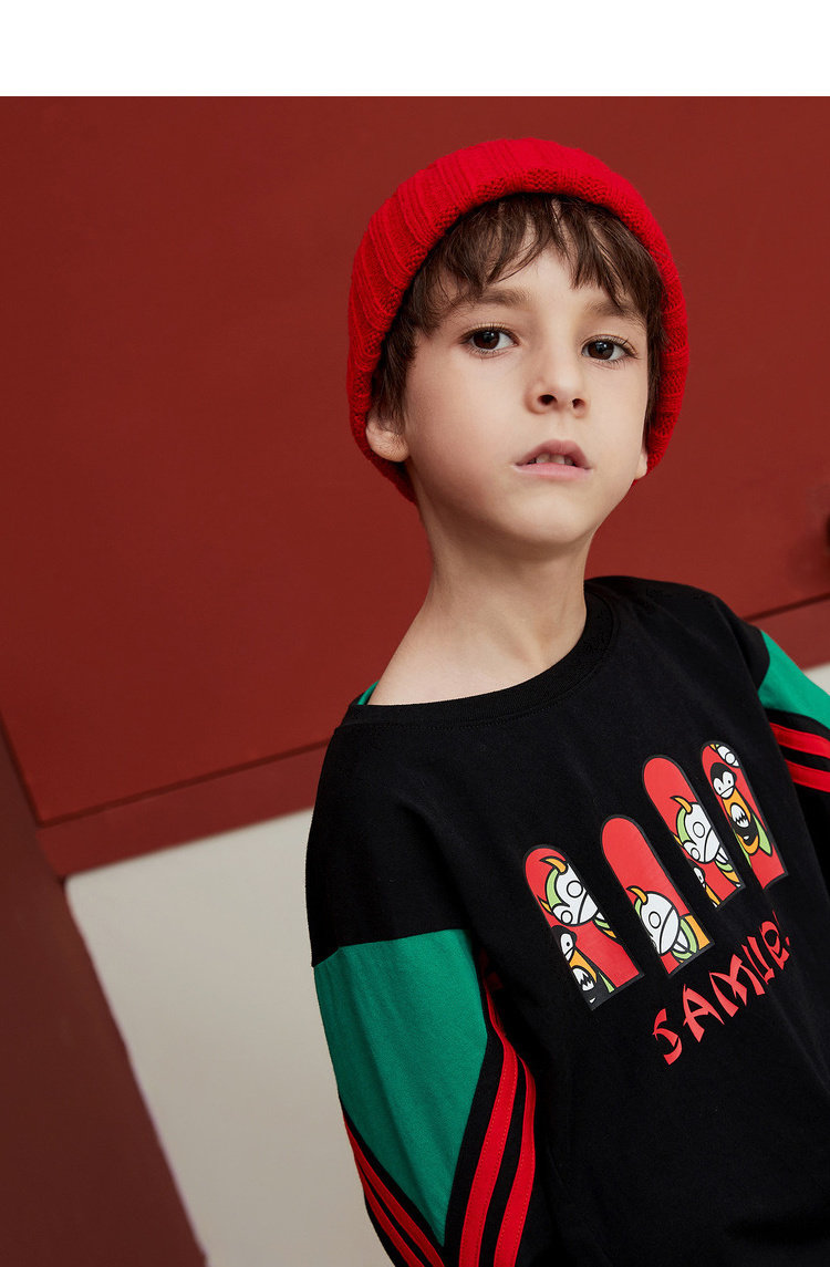 MQD на мальчика длинный рукав Футболка чистый хлопок детские Шить новая коллекция Средние дети свободные печати популярный спортивный верх Одежда