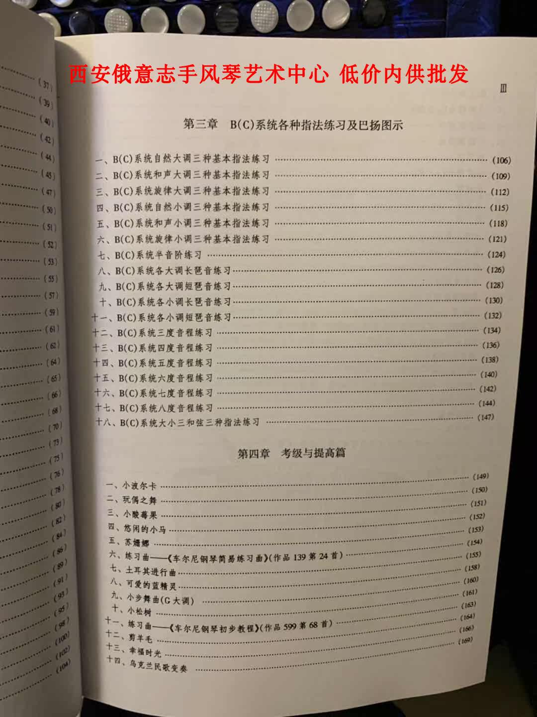 Xi'an Russian Will Will Handiculum Art Center специально запустил учебник по фортепиано в стиле Bayan Hand!Подходит для b, c система исследование!Оба пальца в книге оба имеет стандартный Помните и совпадайте имеет Подробные схемы клавиатуры и другие комментарии подходят для начинающих и расширенного обучения, в общей сложности более 270 страниц, позже имеет Сложность песня, одна стиль Сравнивать полностью Лицо пианино пианино.
