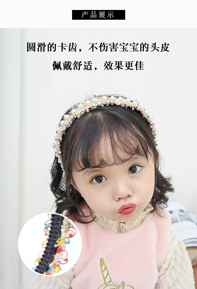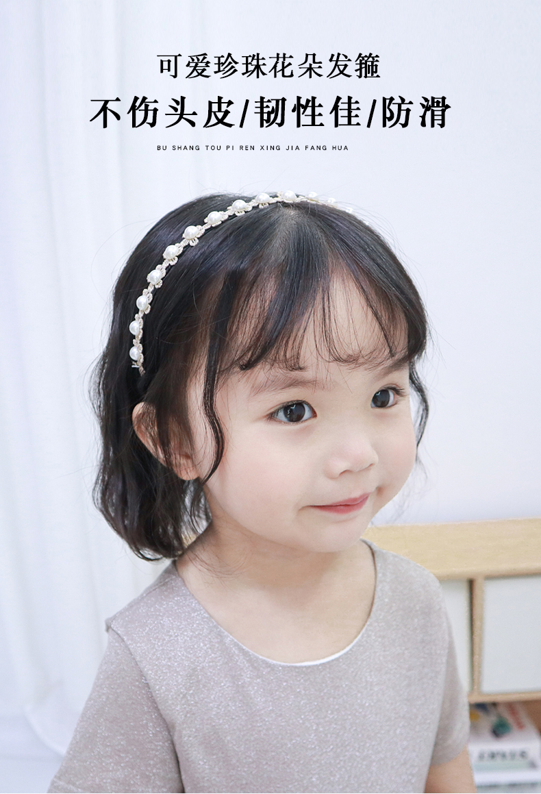 Детские Аксессуары для волос, заколка, повязка на голову на девочку Зажим для головного убора корейский детские с жемчужинами Симпатичная повязка на голову для маленькой принцессы нескользящие Зубчатый