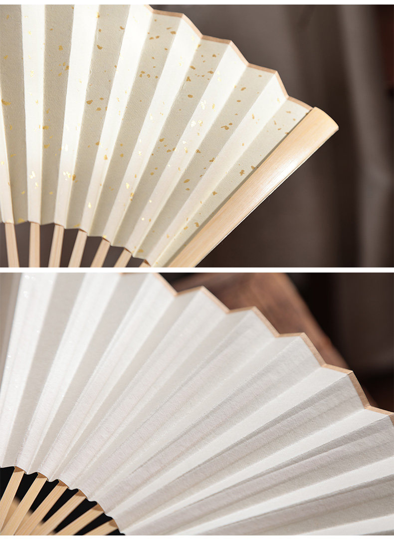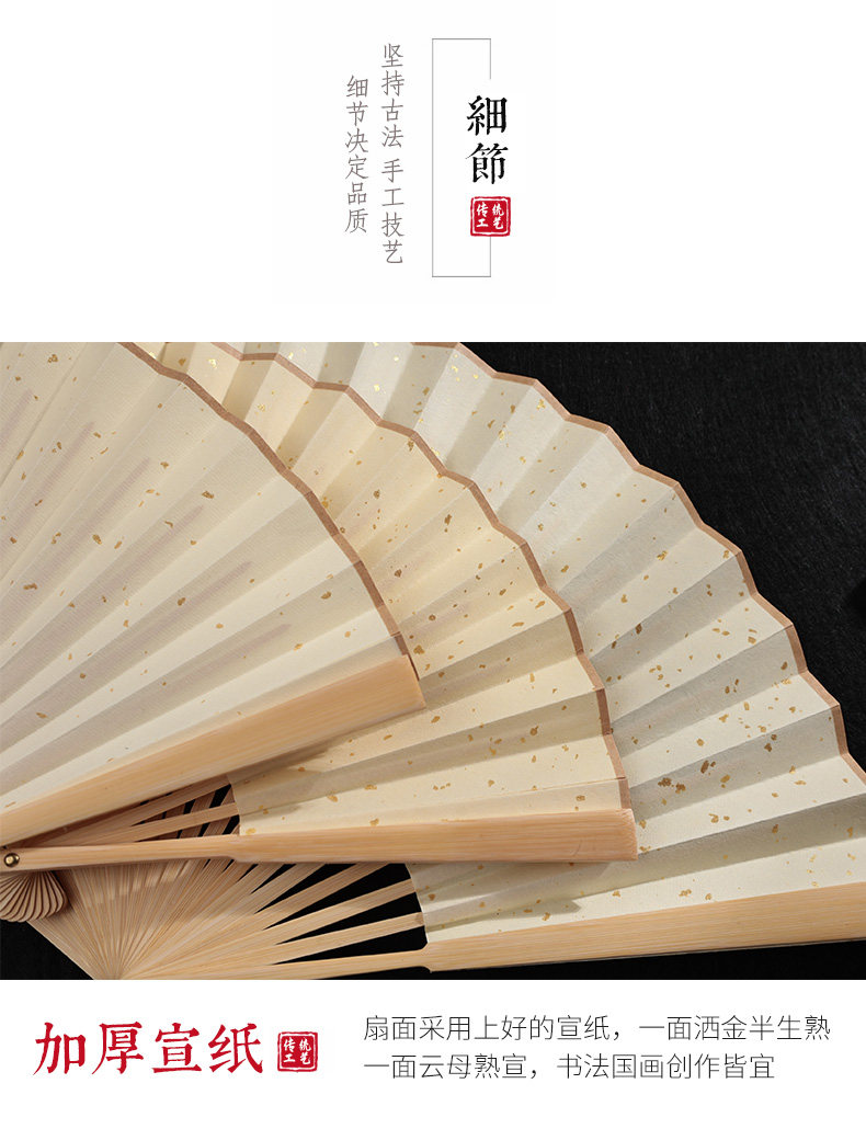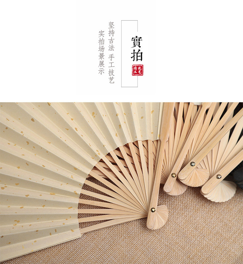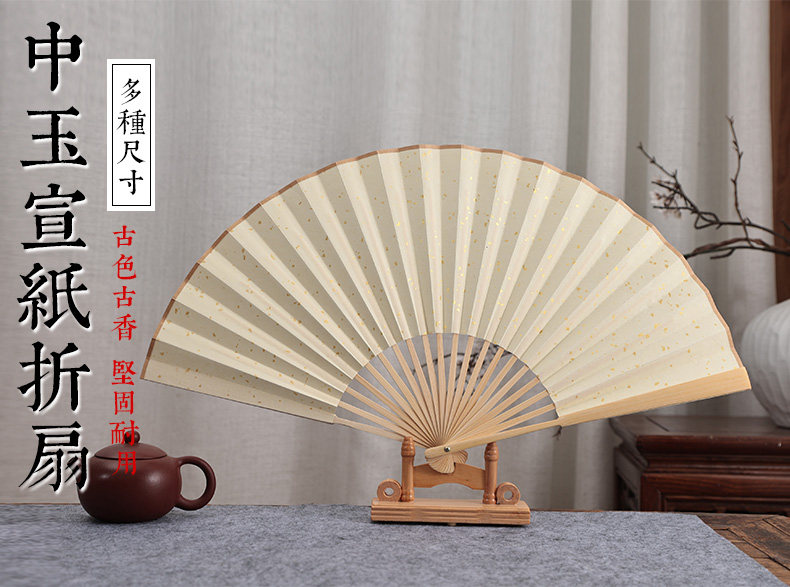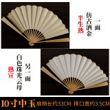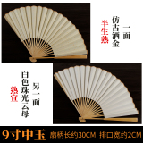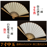 Средний нефритовый золотой рис бумаги складной вентилятор китайского вентилятора белый Веенные книги слово Бамбуковый вентилятор кости DIY создание