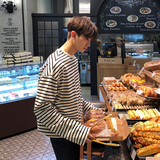 MRCYC осень новая коллекция мужской длинный рукав Футболка для отдыха Свободный полосатый принт верх Школьники корейская версия Большая рубашка прилив