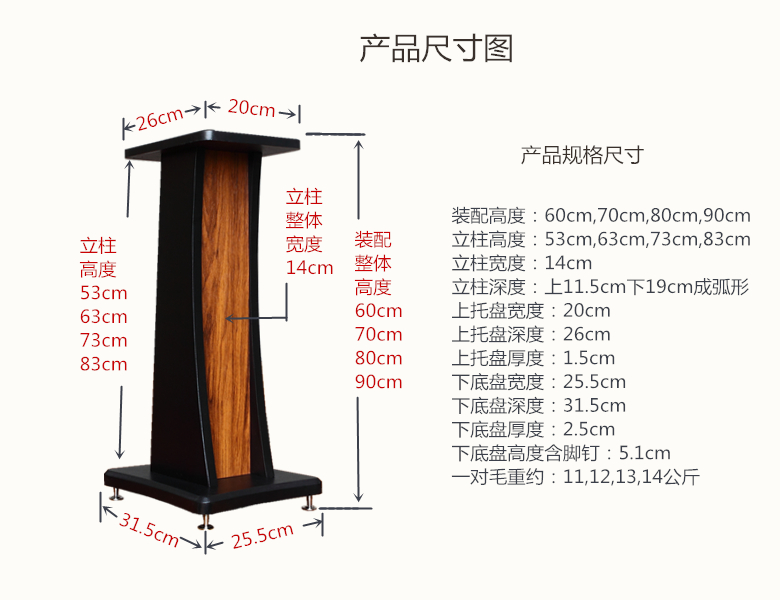 Tianyun Хуэй Вого динамика кронштейн окружал звук полка пола из массива дерева книжных полки коробка деревянных крепежных профессиональная стойка
