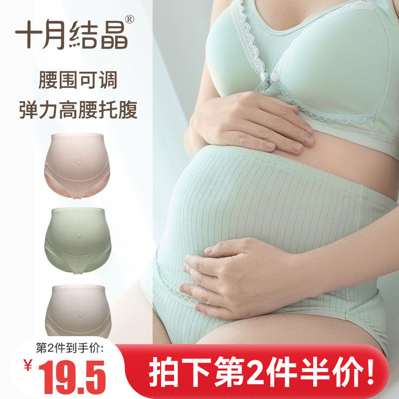 Октябрьское кристалл беременных женщин нижнее белье чистый хлопок В середине беременности в середине беременности высокая Удивительная женщина стиль Беременность 3. полосатый