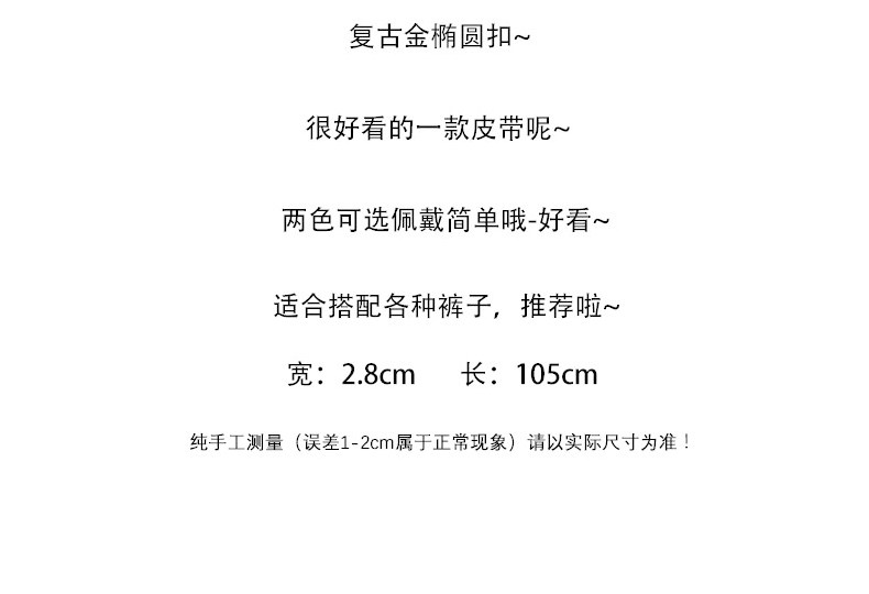 Цвет: Винтаж Золотой эллипс с застежкой черный, Винтаж Золотой эллипс с застежкой Цвет кофе, Черный Ширина 3.0см, Ширина цвета кофе 3,0 см, Черный золото с застежкой Ширина 2,8см, Черный Серебряный с застежкой Ширина 2,8см, Цвет кофе золото с застежкой Ширина 2,8см, Кофе серебристый с застежкой Ширина 2,8см, Круглое золото с застежкой (3,1см), Серебряный с застежкой (3,1см)Размер: 105cm