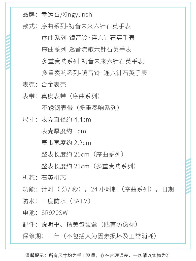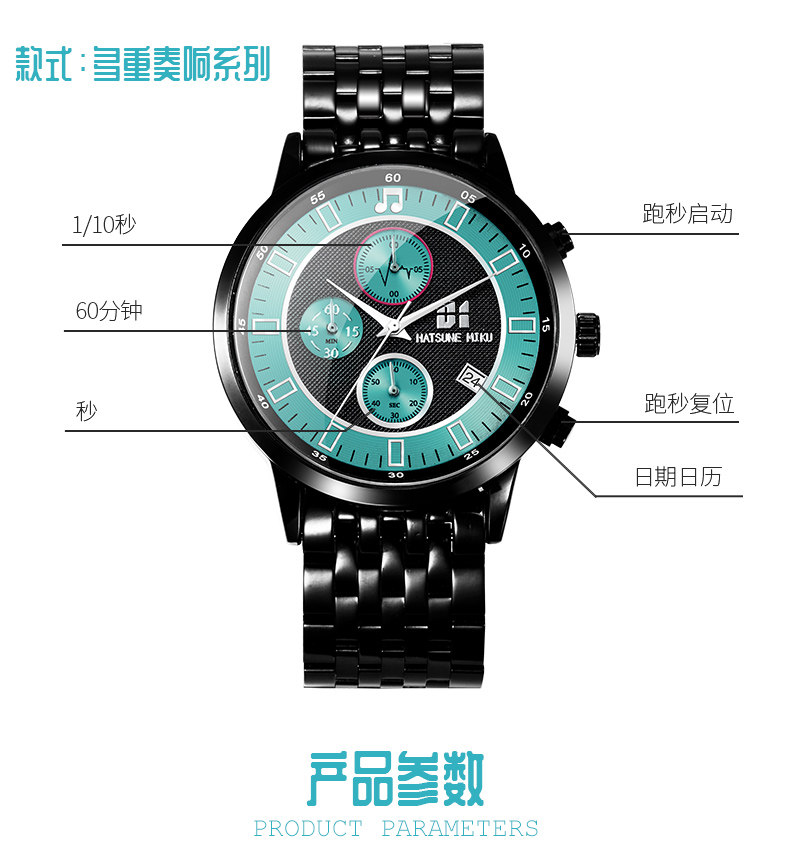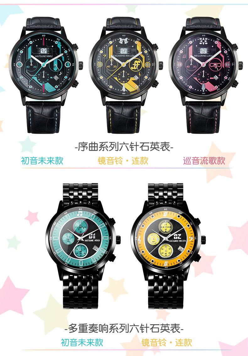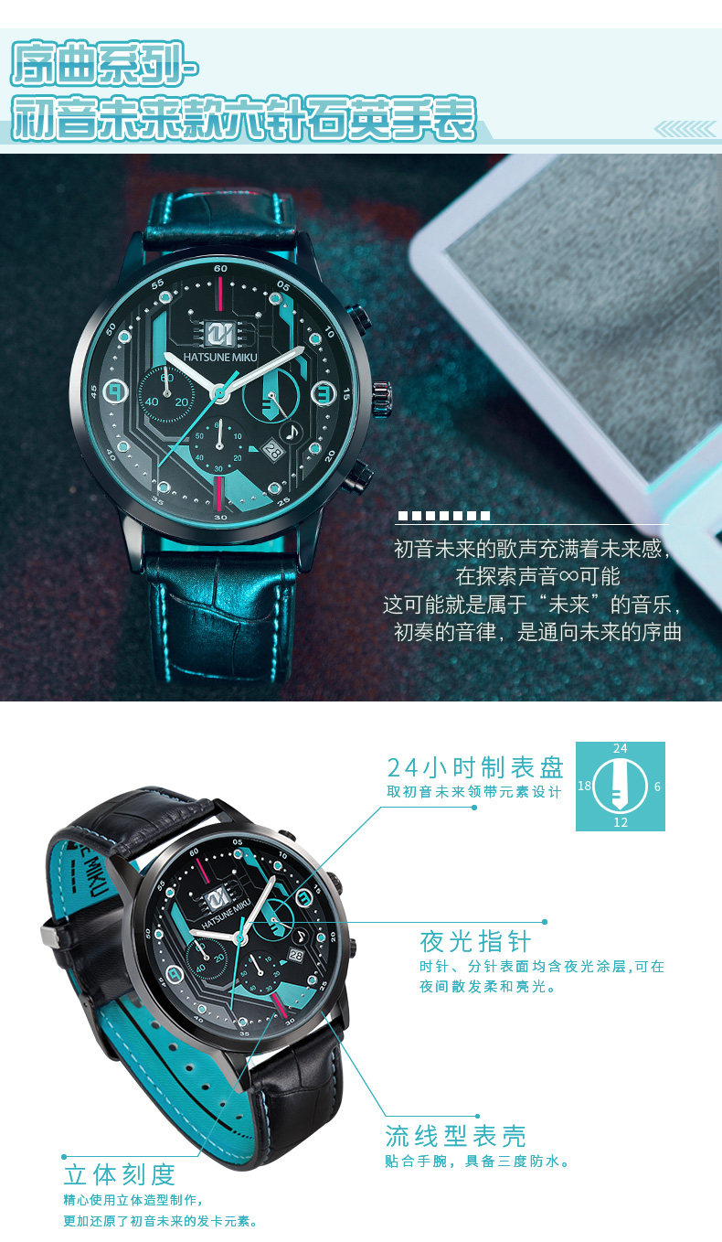 Цвет: Черный Будущее будущее - последовательность шести стрелка Кварцевые часы, Черный Hatsune часто проходит более шести стрелка Кварцевые часы, Черный Прелюдия серия - зеркало Yingbi · Даже стиль шесть стрелка Кварцевые часы, Черный Multi-Play Series - зеркало Гром стиль шесть стрелка Кварцевые часы, Черный Prelude Series - Тур песни стиль шесть стрелка Кварцевые часы, Три степени водонепроницаемый, Гарантия один годРазмер: Официальный только что версия Один год пакет На три года