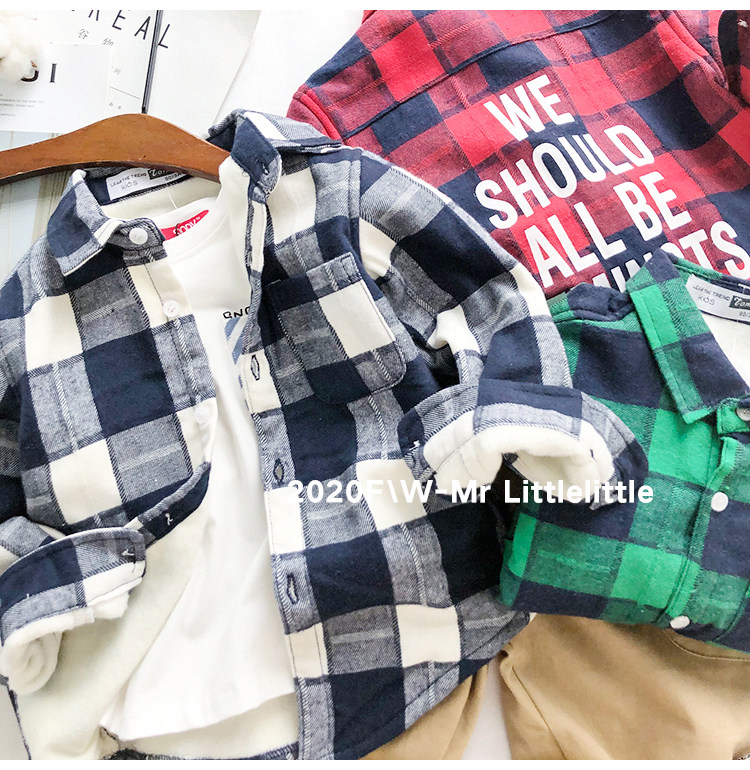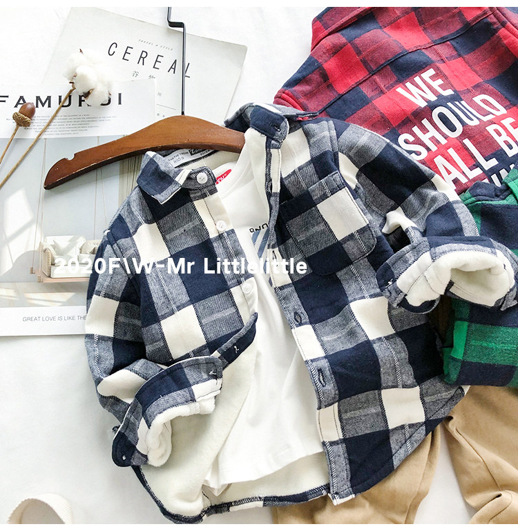 На мальчика чистый хлопок замшевый сорочка зимний 2022 новая коллекция детские удерживающий тепло утепленный верх Одежда детей детские длинный рукав рубашка