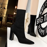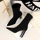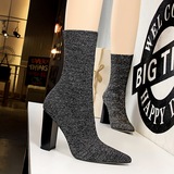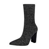 Сапоги ЖЕНЩИНА 2022 Осень стиль с острым носом широкий каблук носок трикотажный шерстяная пряжа эластичные Тонкие сапоги на высоком каблуке Носок средние ботинки женский