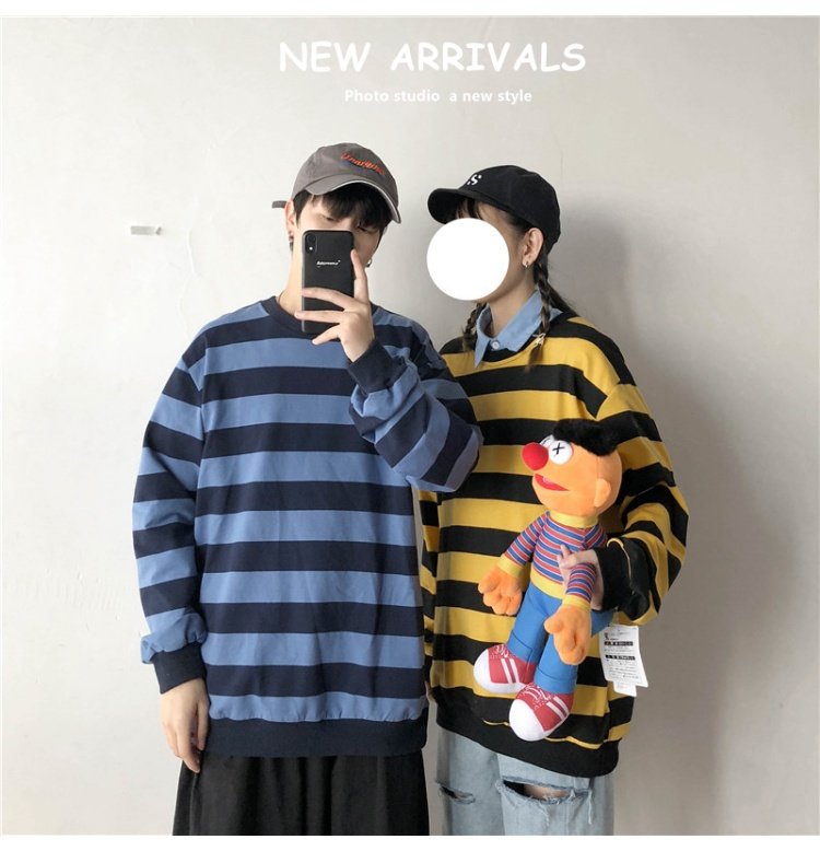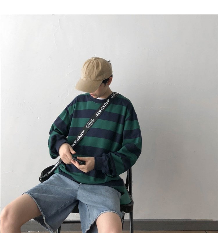 @ 仔 文艺. мужской Весна 2022. новая коллекция полосатый принт толстовка корейская версия Свободная приливная дама в Гонконге ветер для отдыха куртка