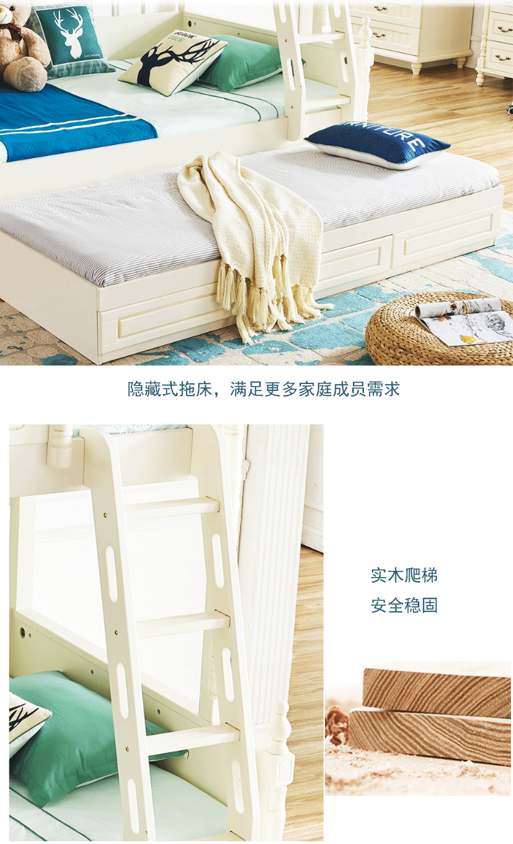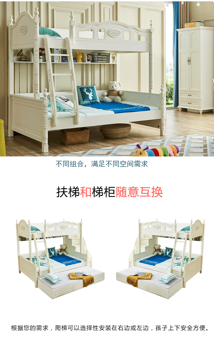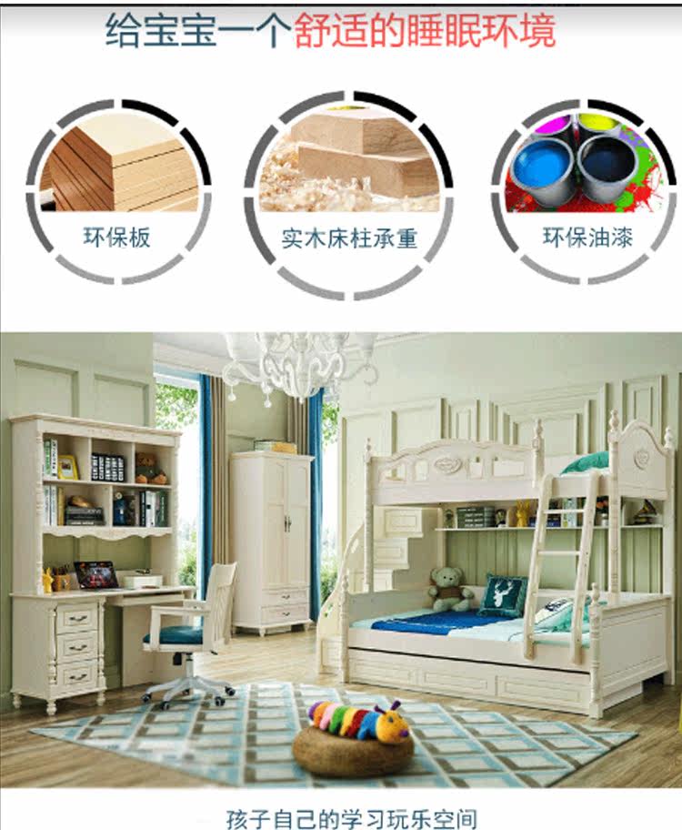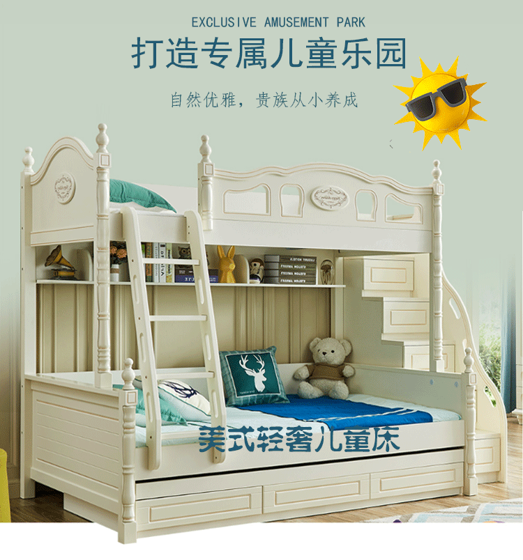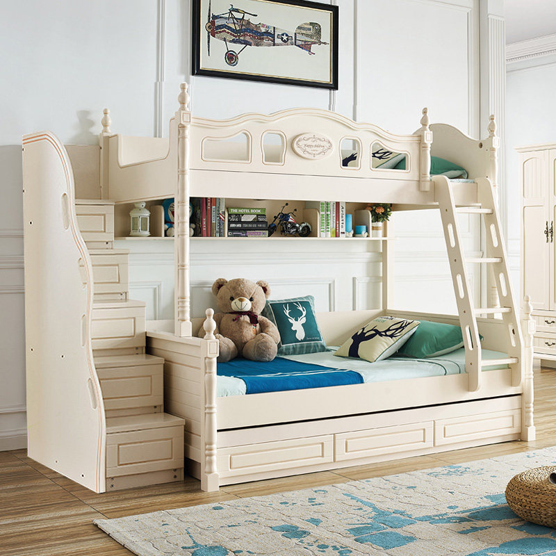 Кровать для ребенка-мамы и швабра American light luxury детские кровать верх и низ кровать двухслойный взрослый высокая Многофункциональная комбинация с низкой кроватью