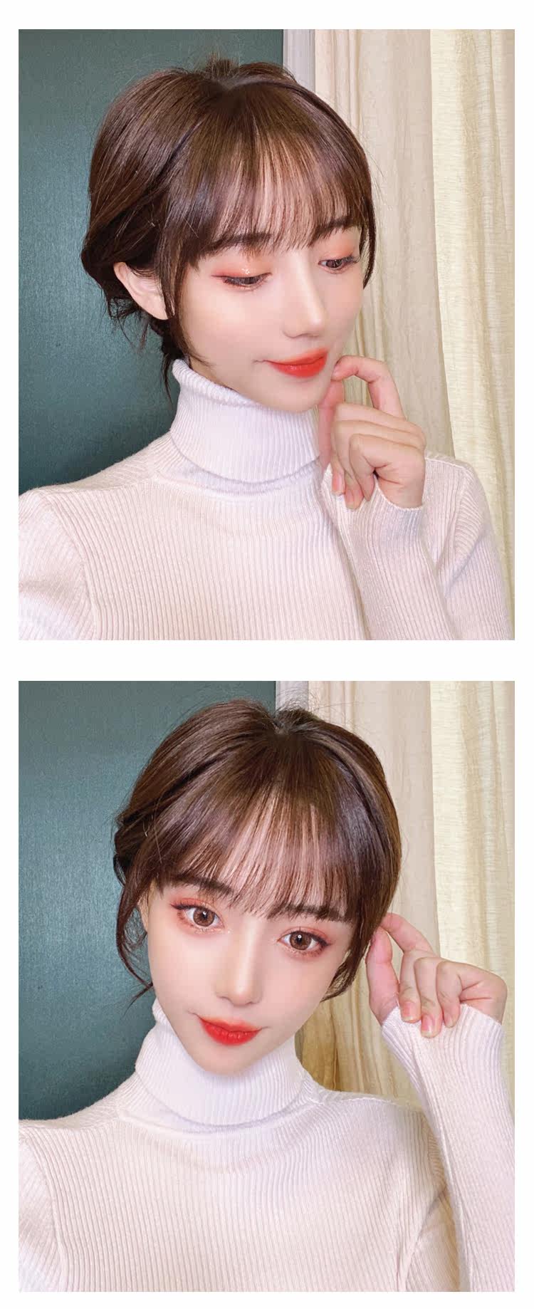 Джейн Си парик женская воздушная челка чистая красный Действительно сделали челку незаметной без Кусок парика с французской челкой