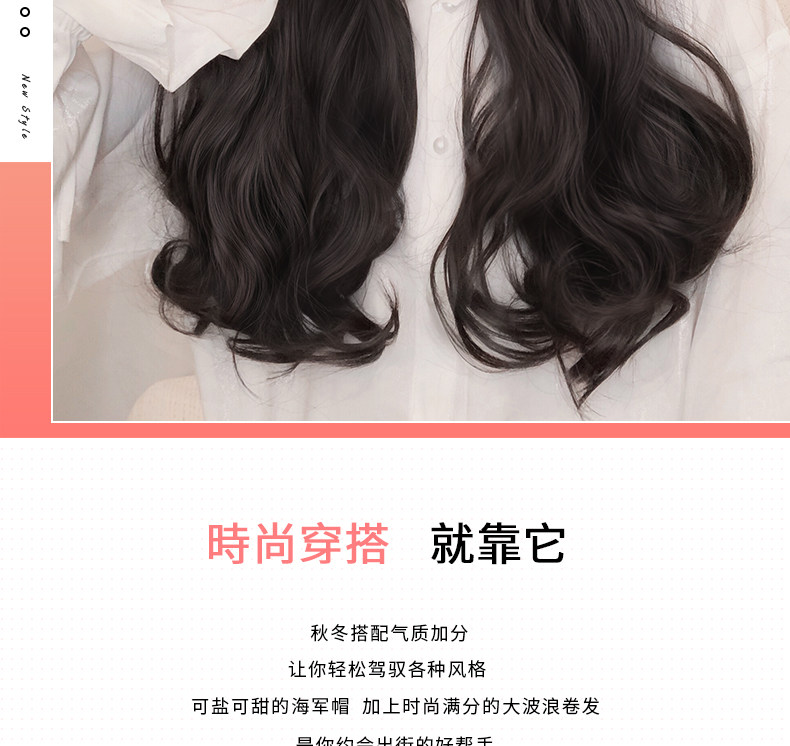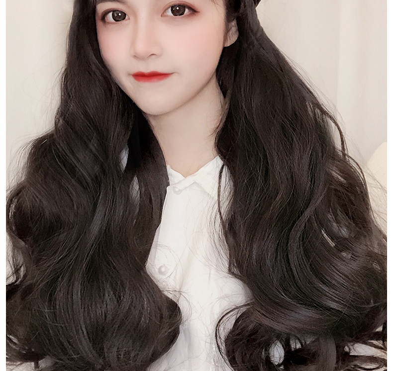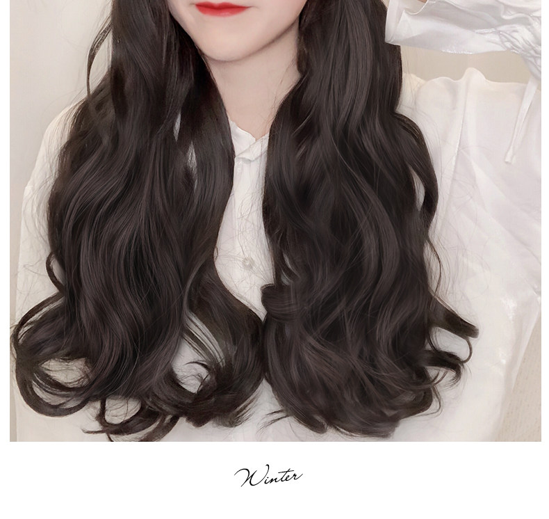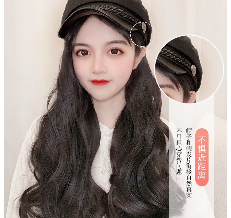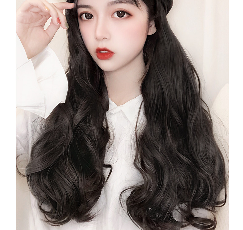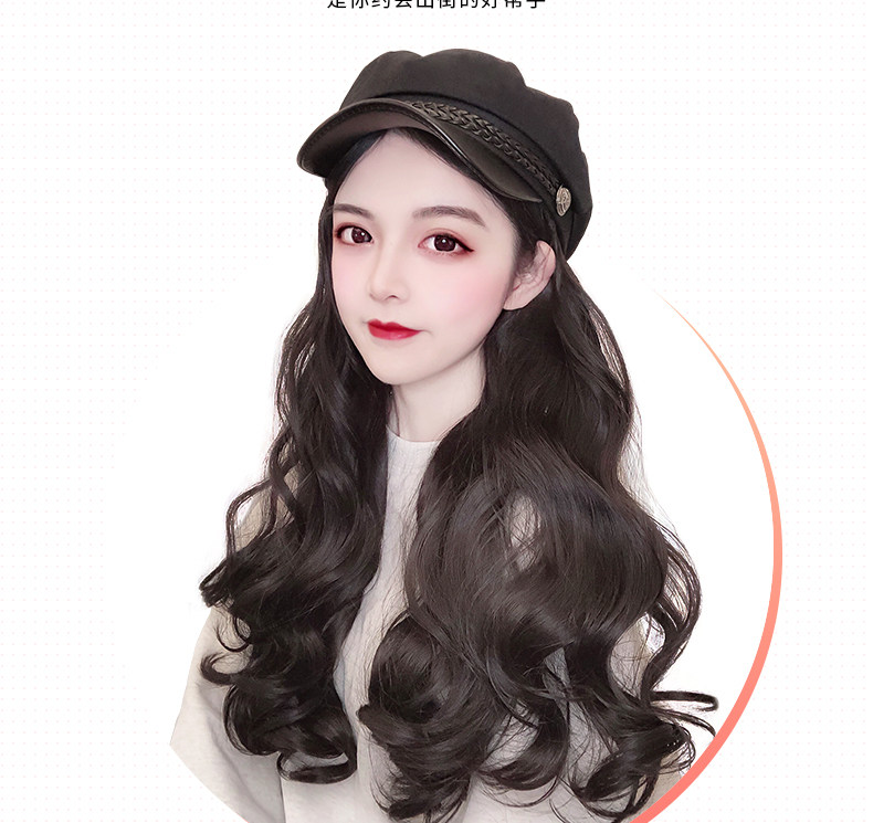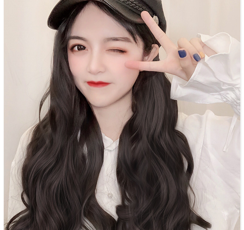 Парик женский длинные волосы натуральный полностью Головная сетка красный военно-морской шапка Парик один женский весна-лето популярный Длинные вьющиеся волосы большими волнами