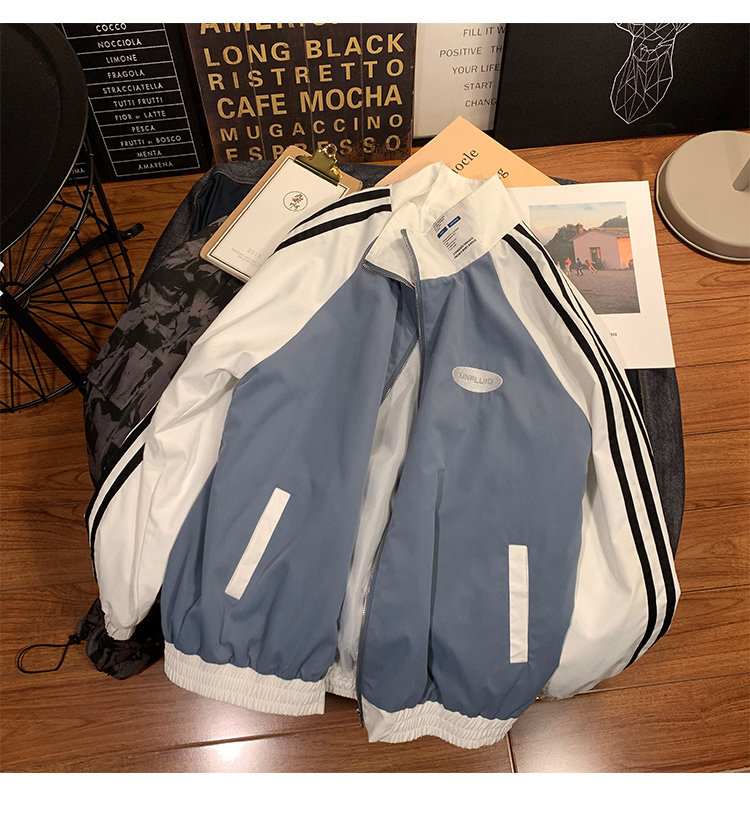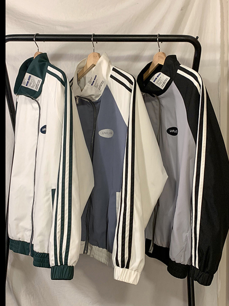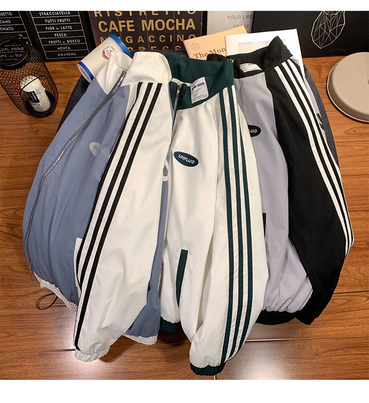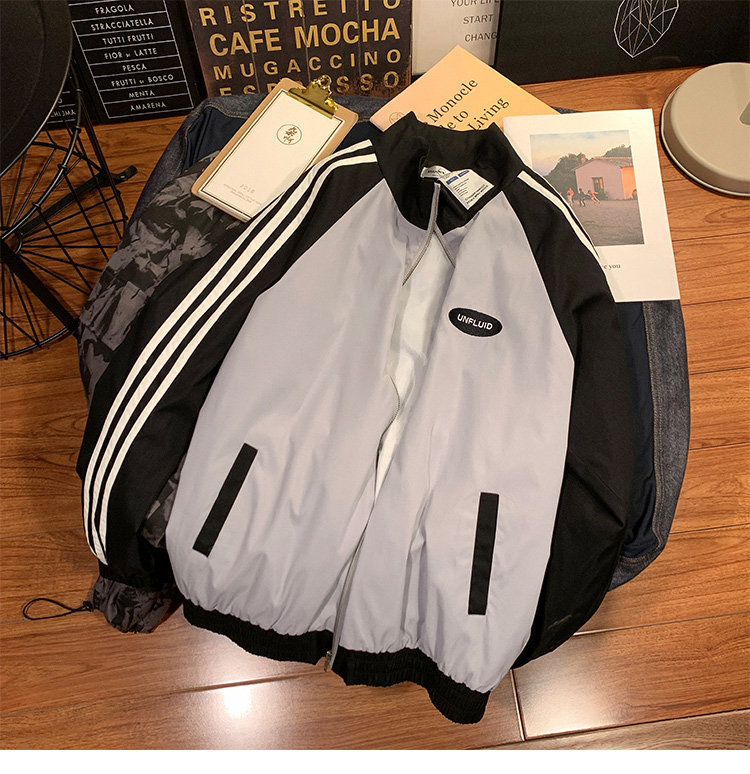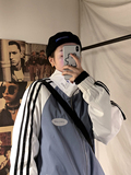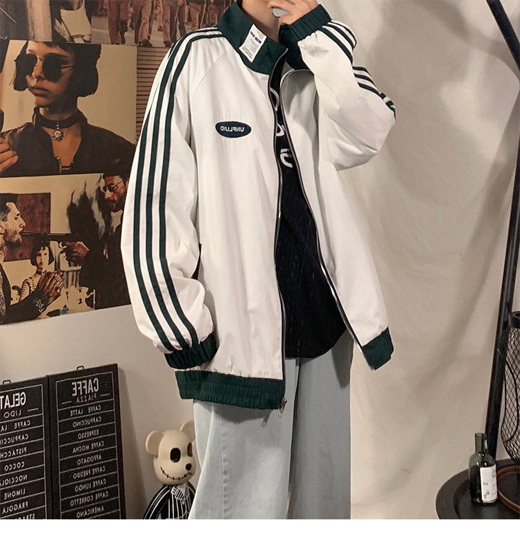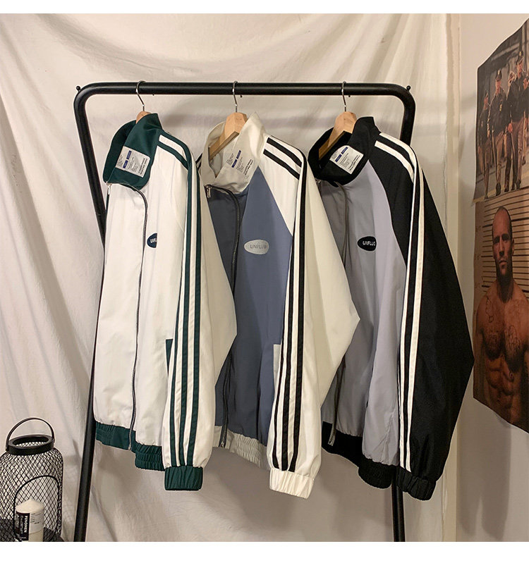 @ 港 仔 文艺 мужской мужской Рожать осень-зима новая коллекция Цветовой контраст жакет верх Свободная и универсальная одежда полосатый принт движение куртка