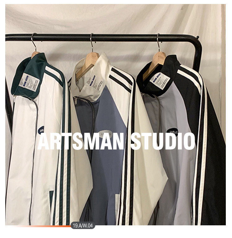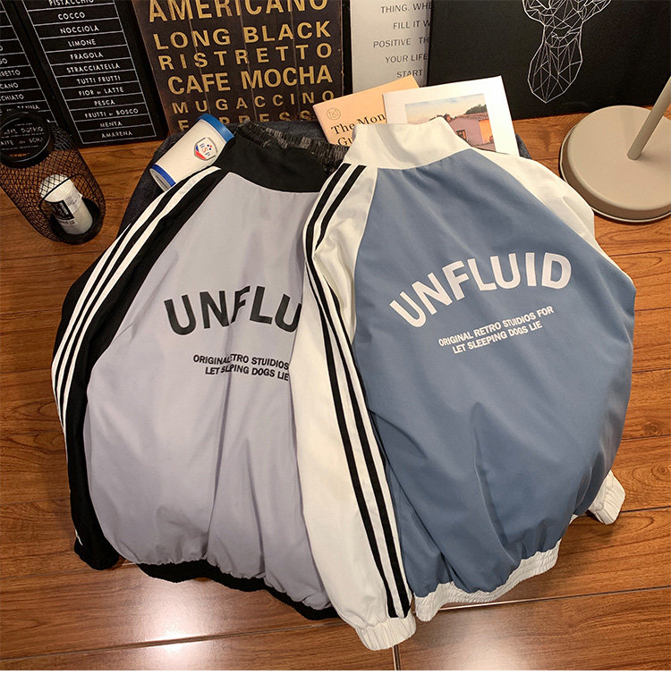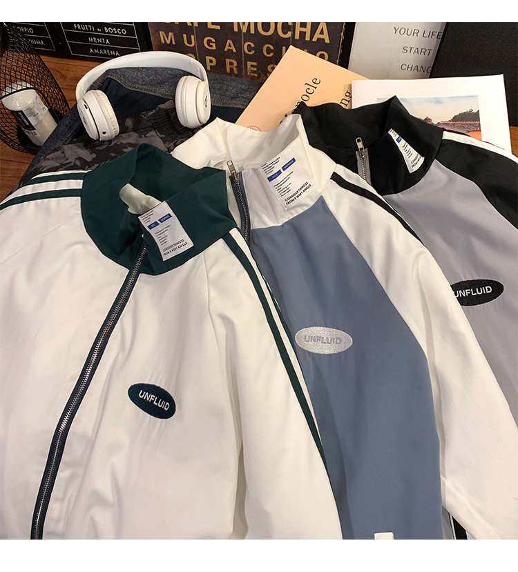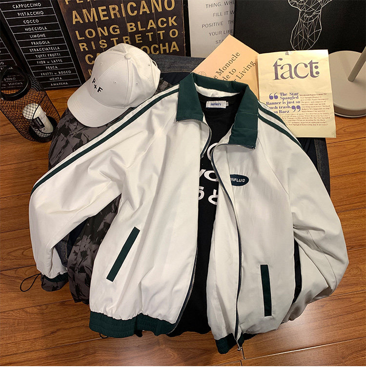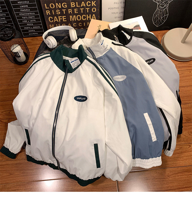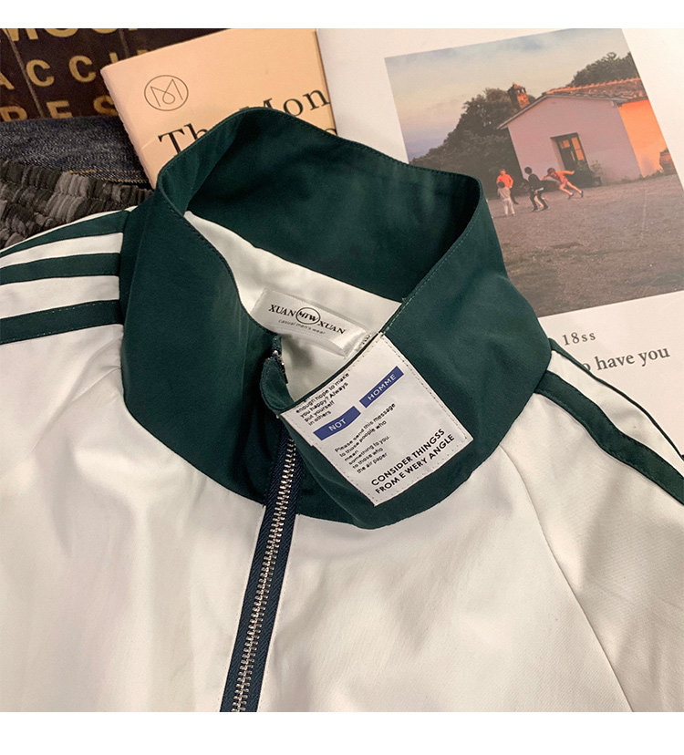 @ 港 仔 文艺 мужской мужской Рожать осень-зима новая коллекция Цветовой контраст жакет верх Свободная и универсальная одежда полосатый принт движение куртка