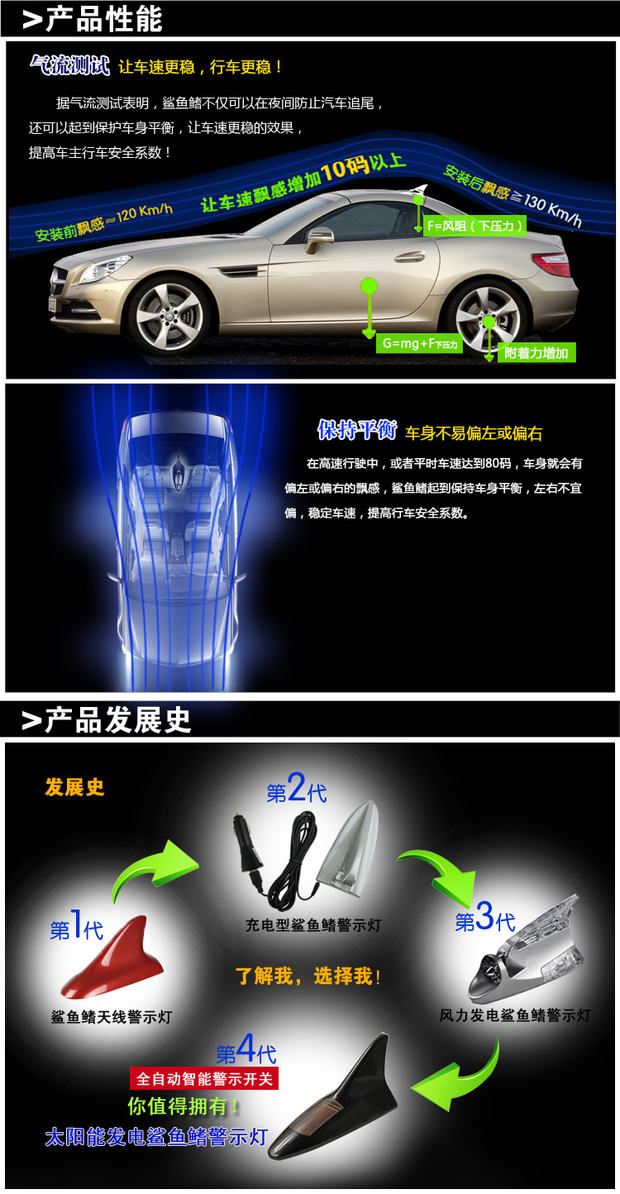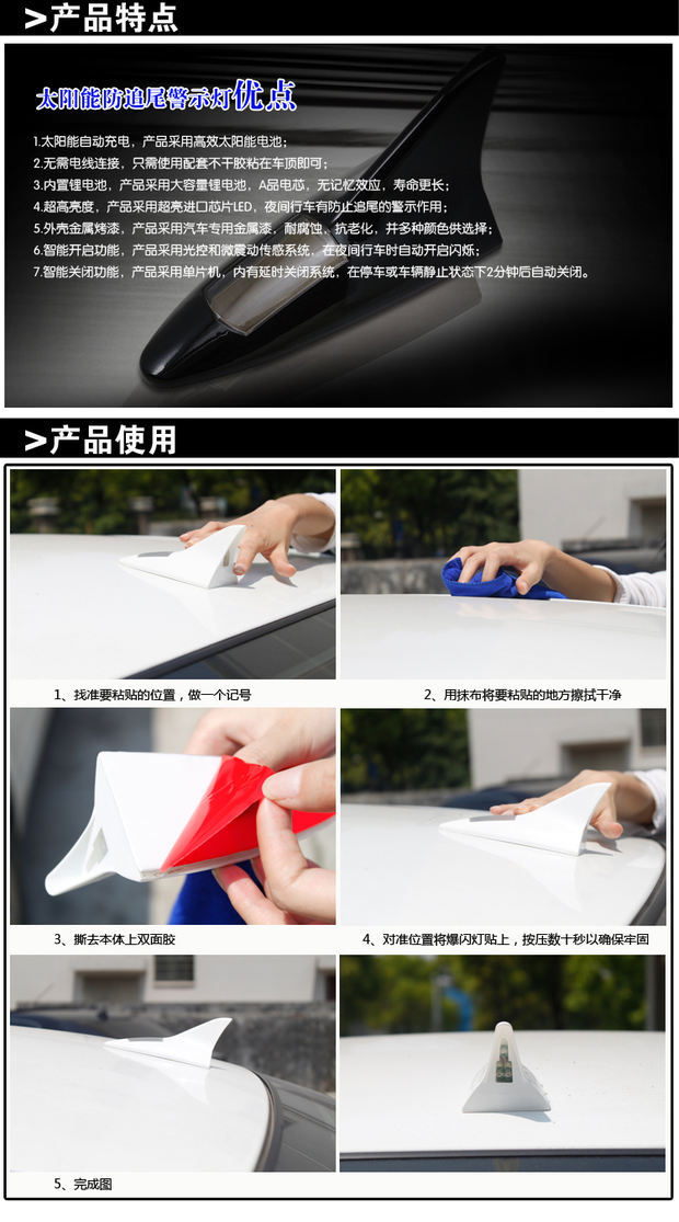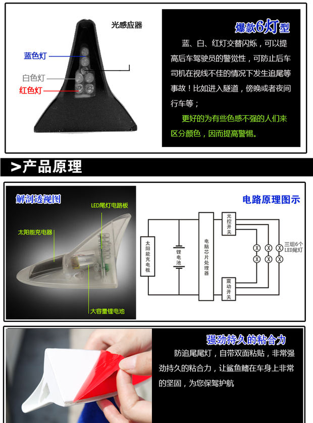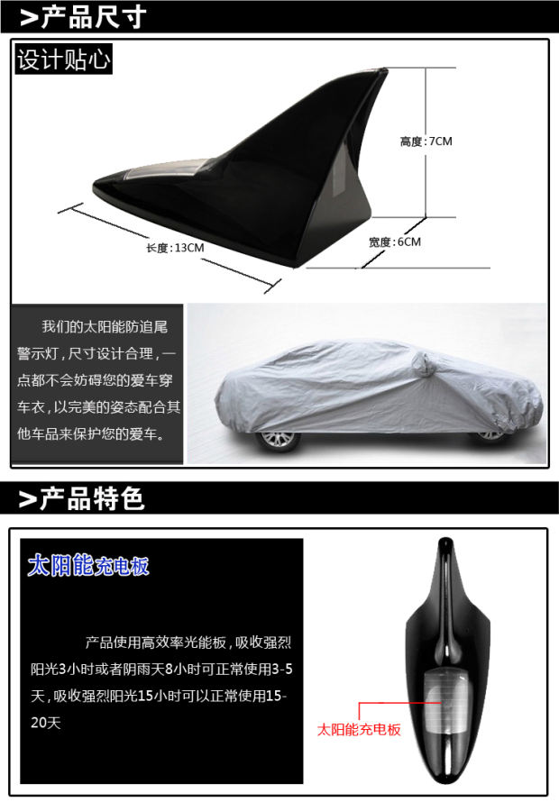 Автомобильный солнечный предупреждение свет Лучшие светодиодные украшения свет Акула плавник автомобиль анти столкновение хвост индукция свет