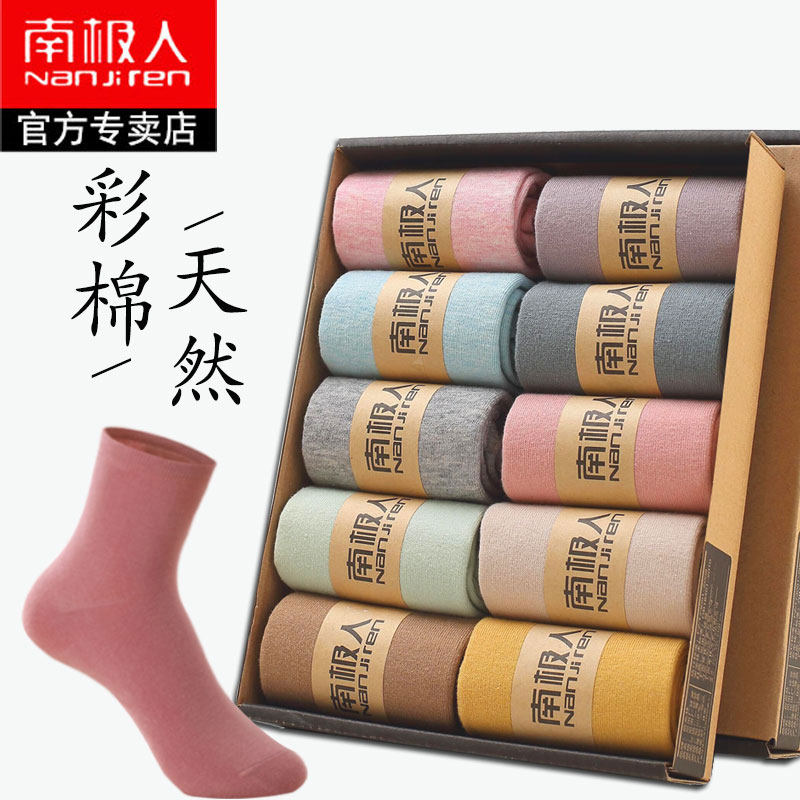 Антарктические носки средние Носок чистый хлопок Гребень полностью хлопок Носок демисезонный черный белый осень-зима Пособие стиль Чулки