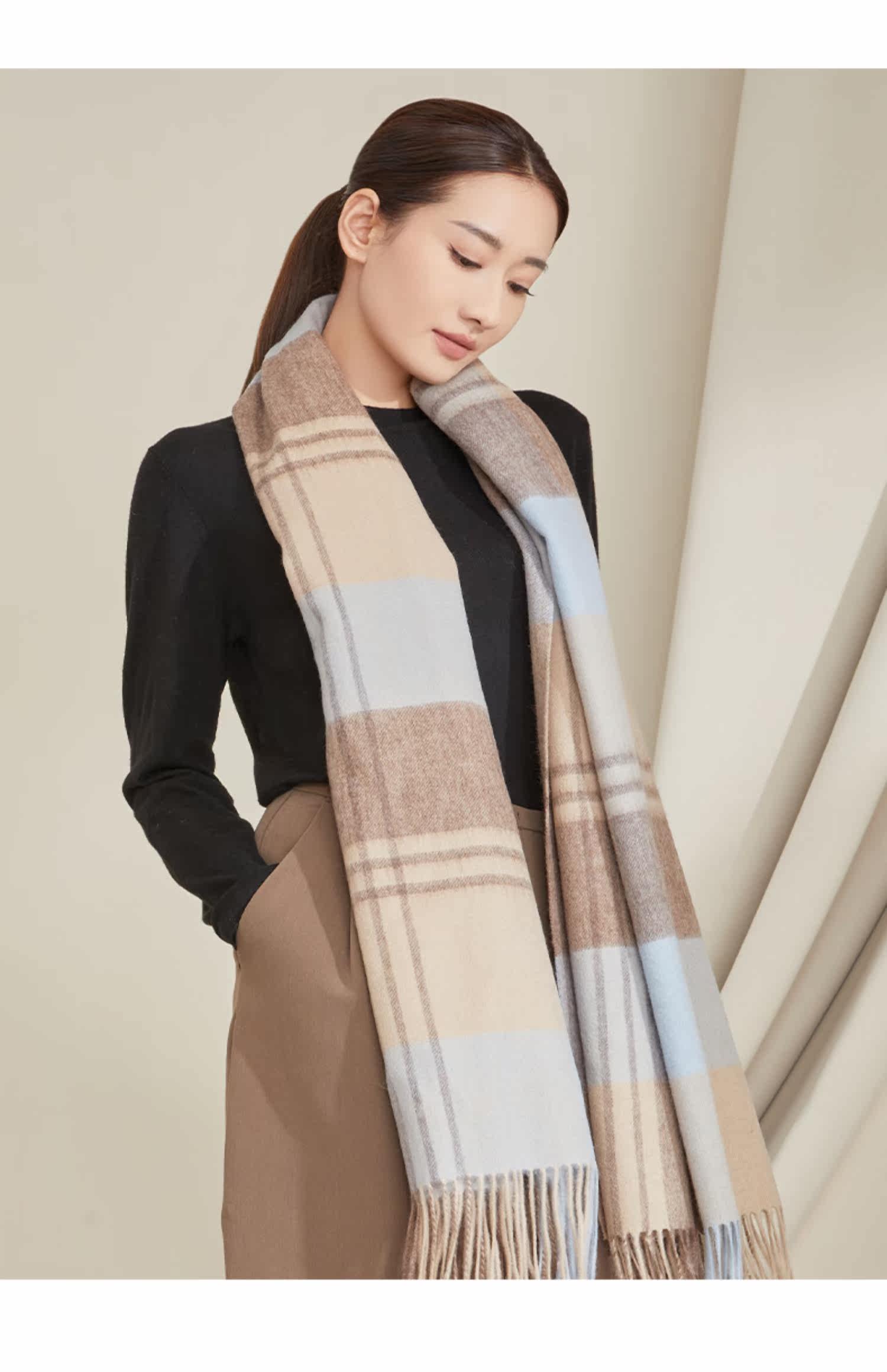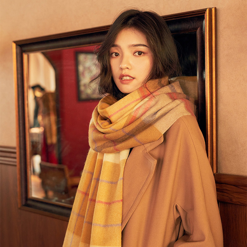 Верх Морская история овечья шерсть шарф Женская зима корейская версия клетчатый Сотни 2022 года зимний новая коллекция удерживающий тепло шарф накидка В центре города