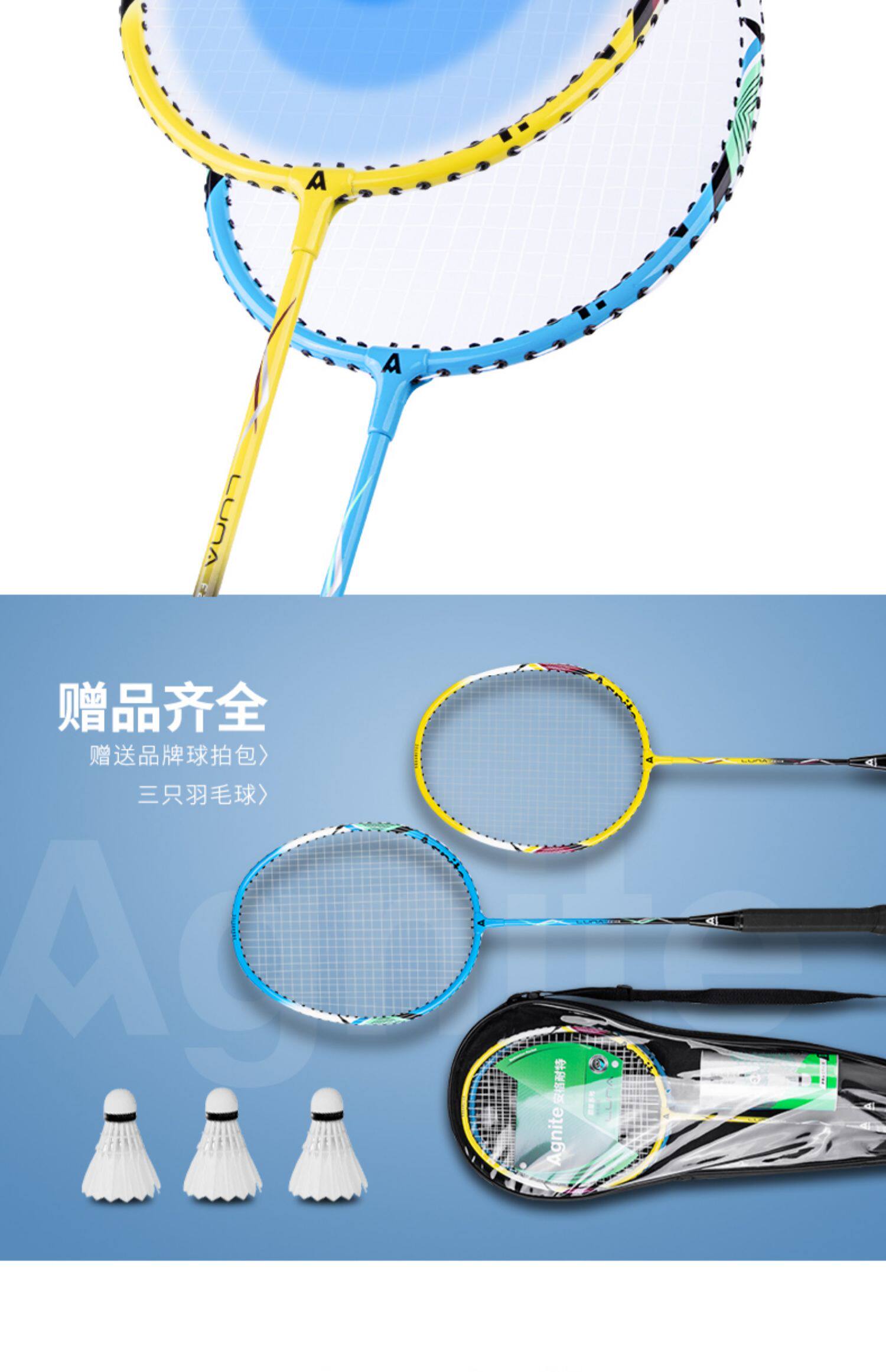 Бесплатная доставка по китаю Anng Nate Badminton Racket Double Shot Семейный новичок Ultra Light 2-фитинг оскорбительный тип оригинал Перо стрелять в YMQ.
