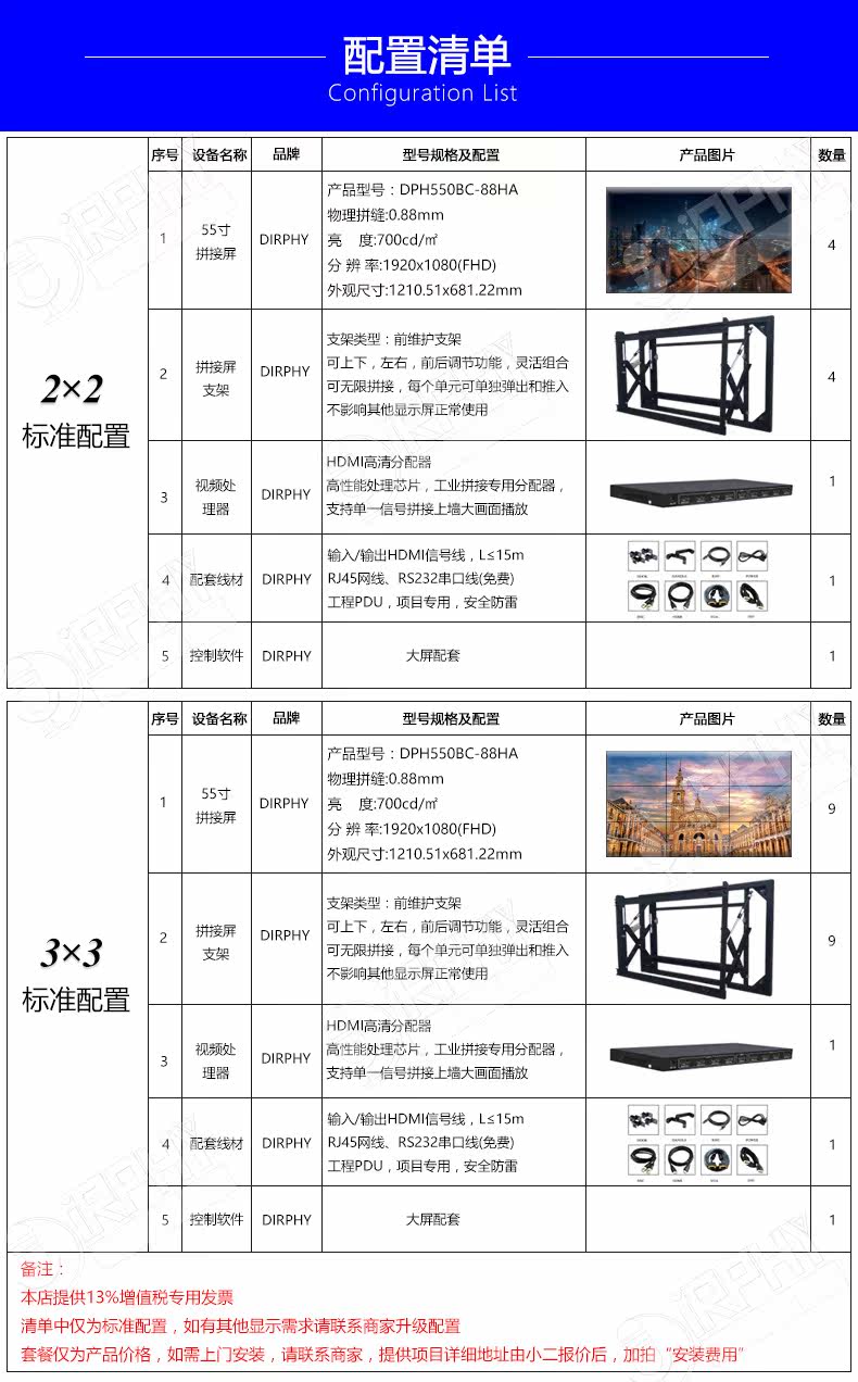 Цвет: DPH550BC-18HA, Решение 1: сшивание 2 × 2, Решение 2: сшивание 3 × 3, Установка Стоимость