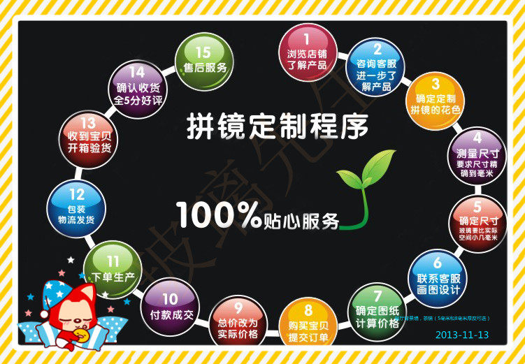 1,ПоставкаНастроить зеркало Общий размер(заклинание зеркало Общая ширина * Всего высокая); -2,core Рассчитать цена (Общая площадь * на квадратный метр цена );3,Покупатель низ ; -4. Мы разрезаем дизайн алмазного блока в зависимости от масштаба по размеру общей площади.; -5,Покупатель подтвердил чертежи;6,Начать настройку производства, доставку в течение недели.