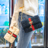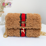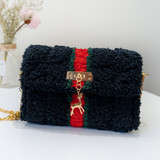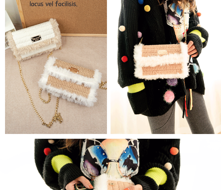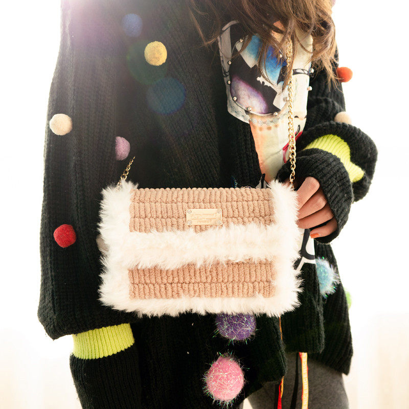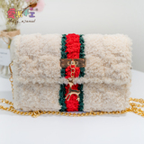 Aimi ручная работа вязанные шуба пакет пакет Материал бархатный лед своими руками полосатый шерстяная пряжа сетка ручной работы один Диагональ плеча пакет женский пакет