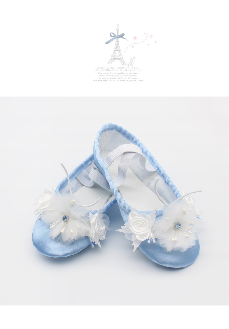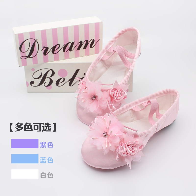 Детские Детские сатиновые туфли для танцев танцевальная обувь Мягкий балет танцевальная обувь Туфли для танцев из атласа с цветком 9078