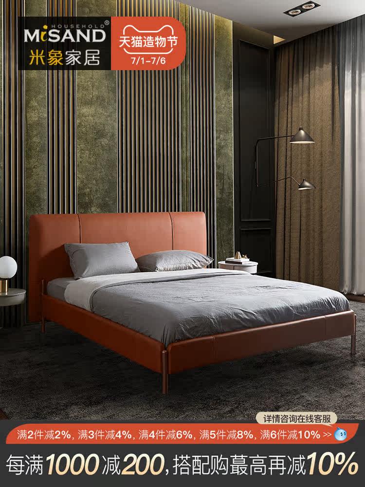 Скандинавская кровать Итальянская минималистичная кожаная кровать двуспальная кровать поколение Простота красный Брачная кровать, главная спальня, большая кровать, светлая роскошь из натуральной кожи кровать