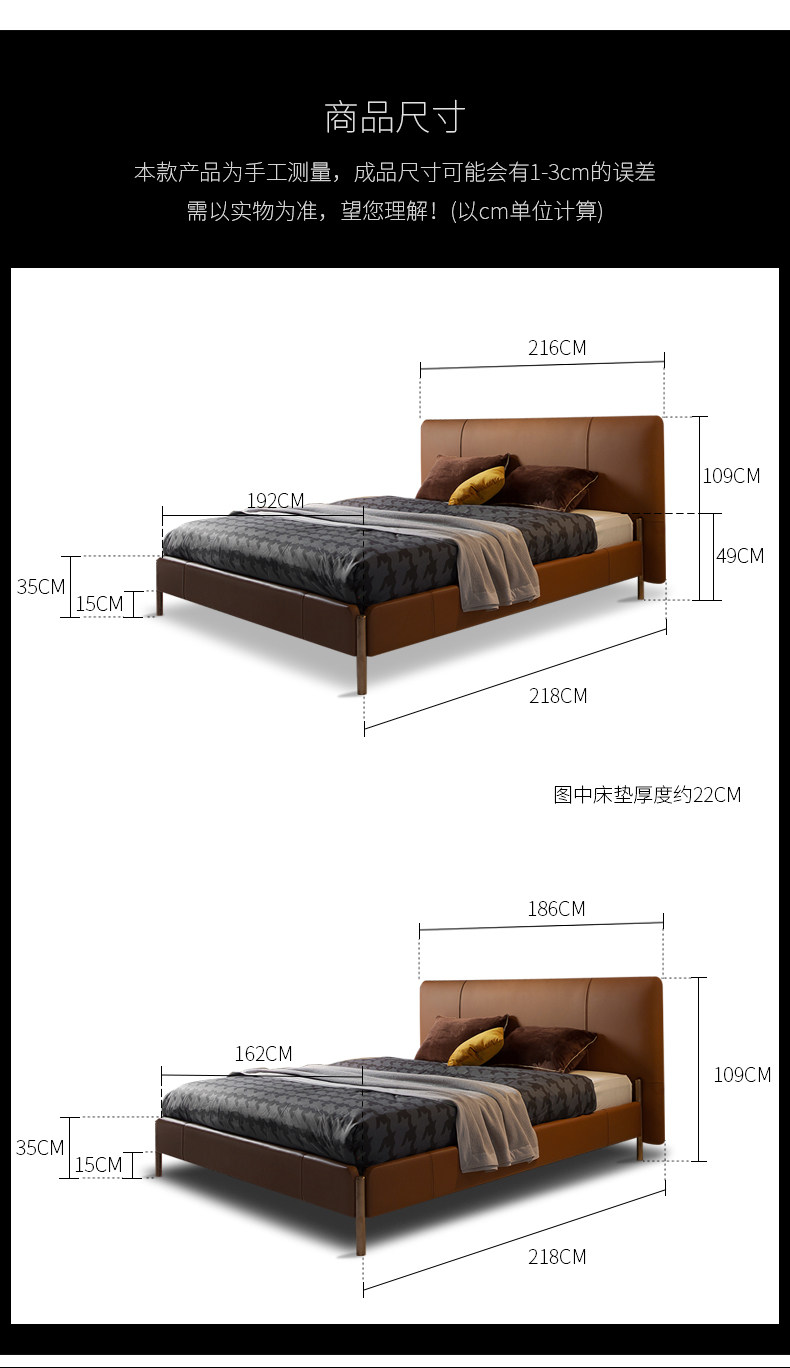 Размер: 1500mm*2000mm, 1800mm*2000mmЦвет: 【Импортированный первый слой кожаный 】кровать, 【Слой головы Напы кожаный 】кровать, Индивидуальная настройка【Свяжитесь со службой поддержки для получения подробной информации】Конструкция мебели: Фреймворк