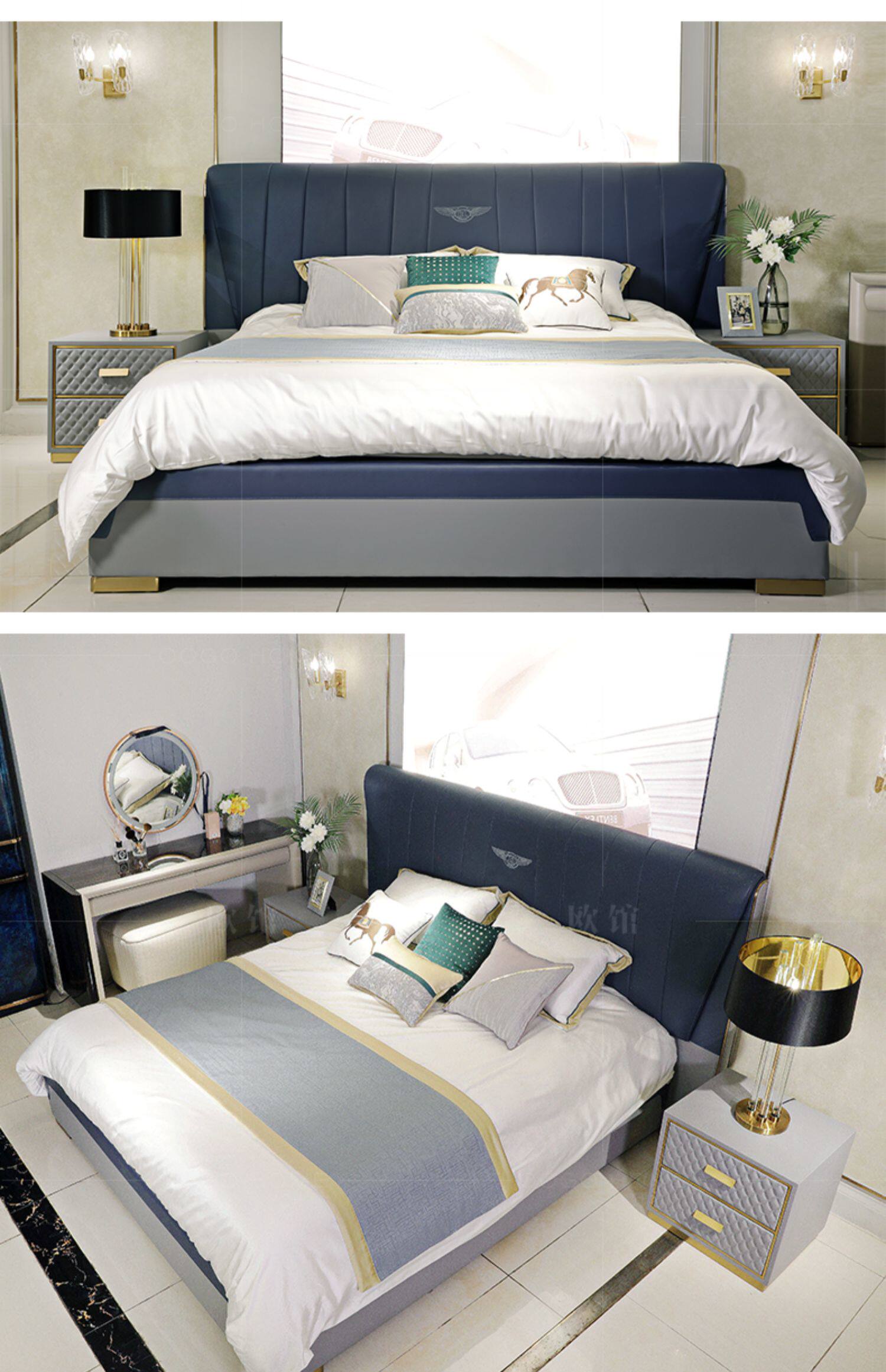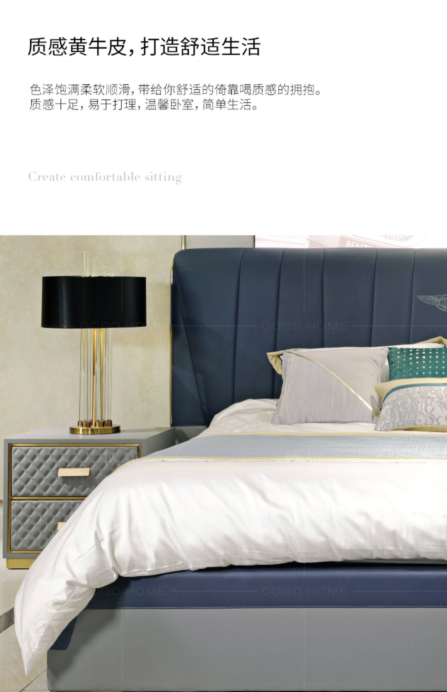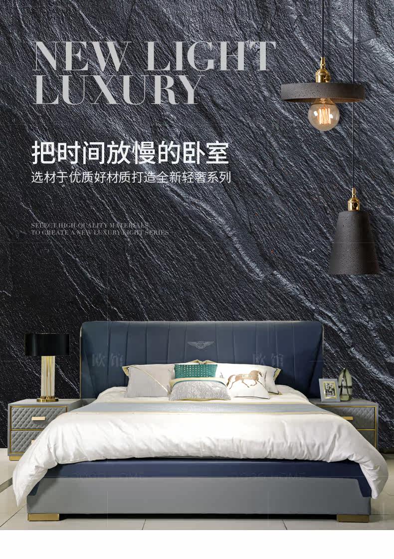 Европа поколение Минималистская голова из натуральной кожи Двуспальная кровать в основном Shackles Hong Kong-стиль легкая роскошная кровать спальня свадьба на заказ