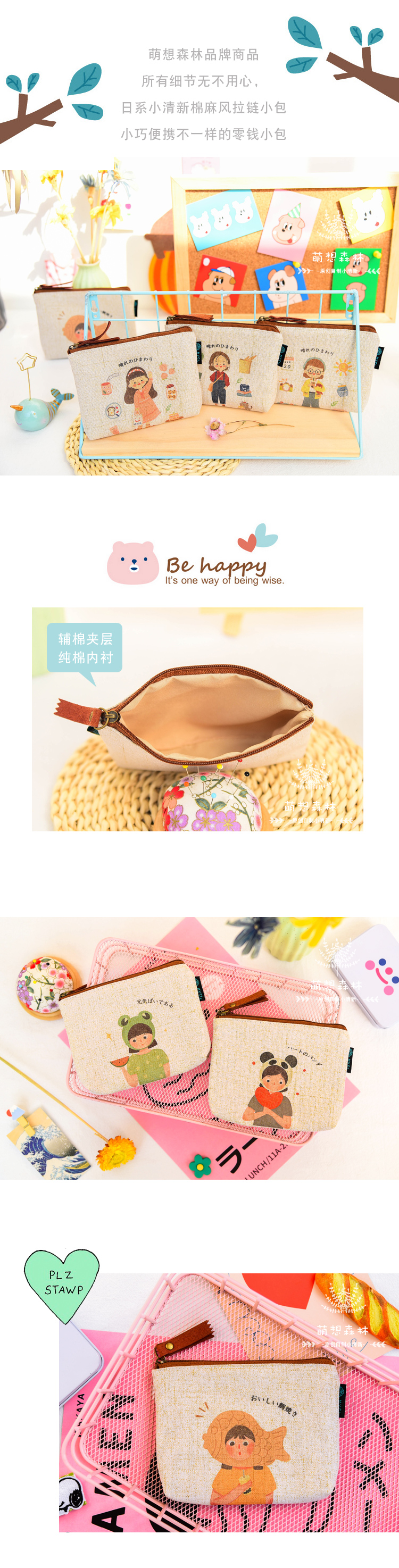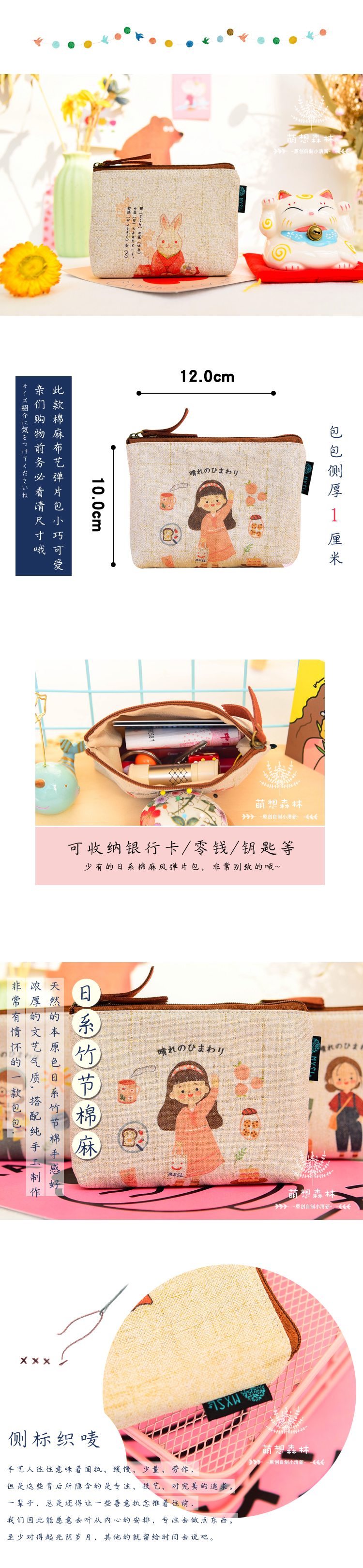 Оригинал на японском хлопок Конопляное полотно с замками монета пакет Маленькая милая мелочь для девочек-студенток пакет рот красный пакет Маленький портативный