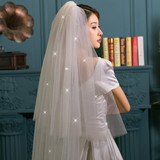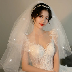 Новый мама свадебное Основная свадебная фата и головной убор - супер сказочный реквизит для фотографий. белый Простое сопротивление атмосферы хвост Пряжа шампанского