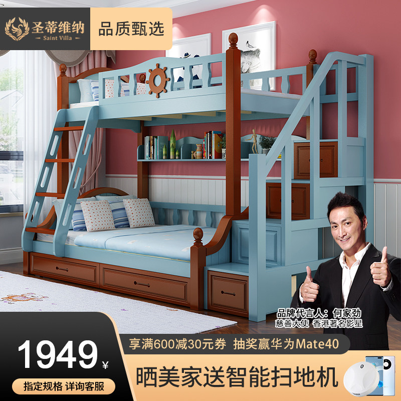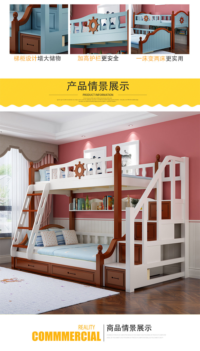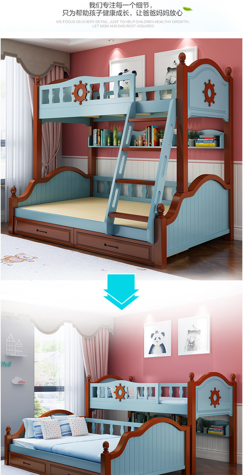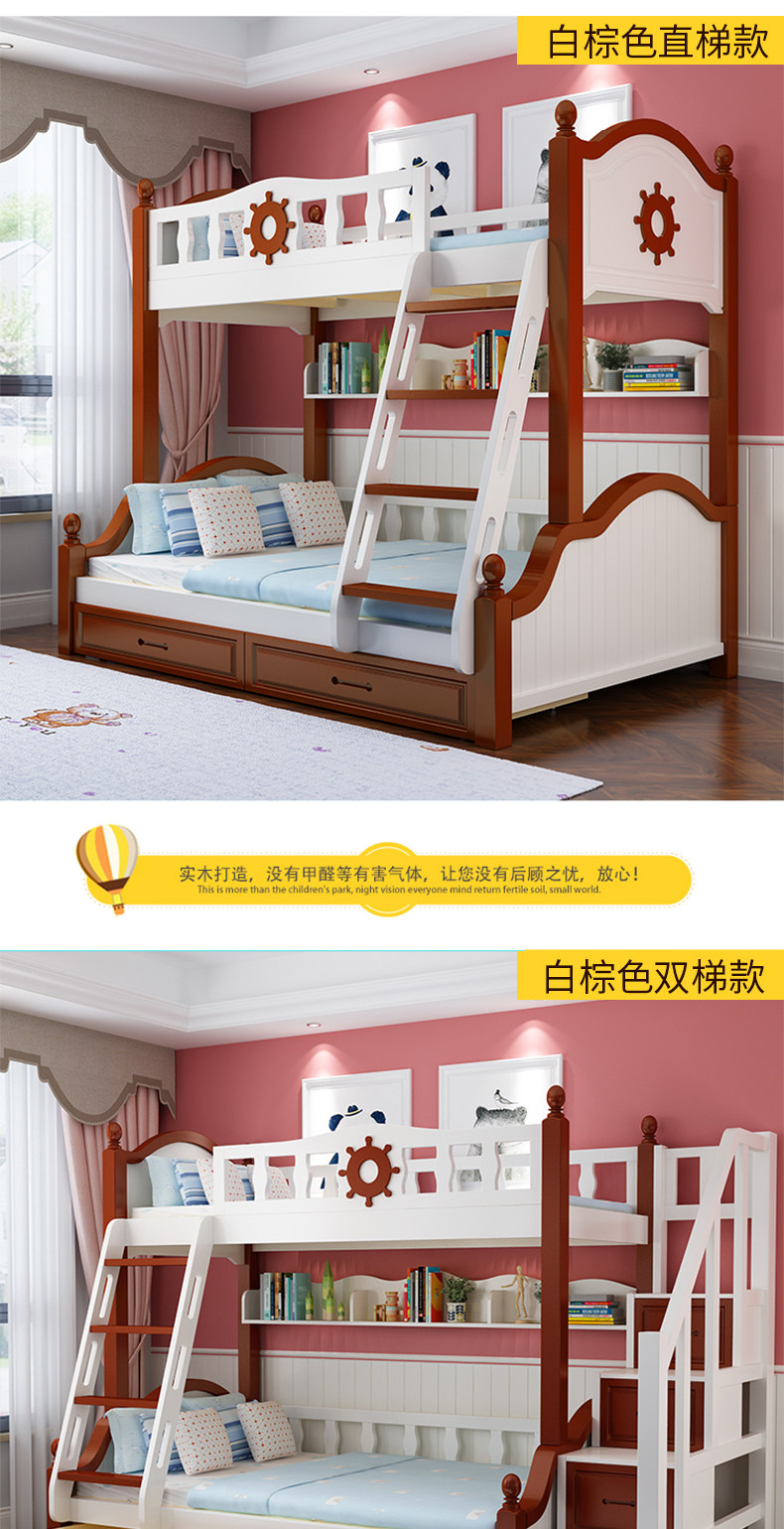 Детские Кровать матери и ребенка верх и низ Деревянная кровать полностью Твердое дерево высокая Низкая кровать двухслойный Двухъярусная многофункциональная кровать взрослый ребенок-мама
