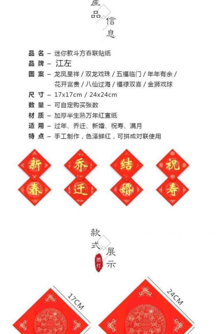 Сяодоуфан Ваньнянь красный Весенний фестиваль куплет, бумажное ведро, квадратная рисовая бумага, 2019, мини-труба, пусто белый дверь Наклейка Fu слово бумага