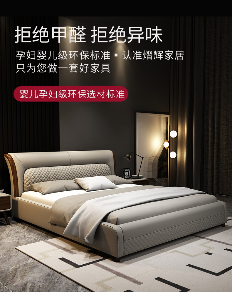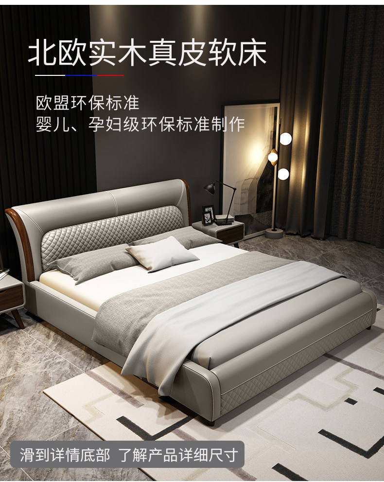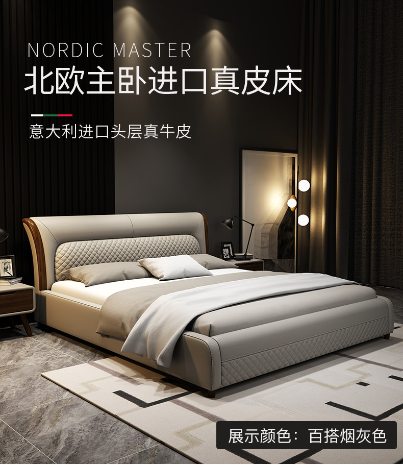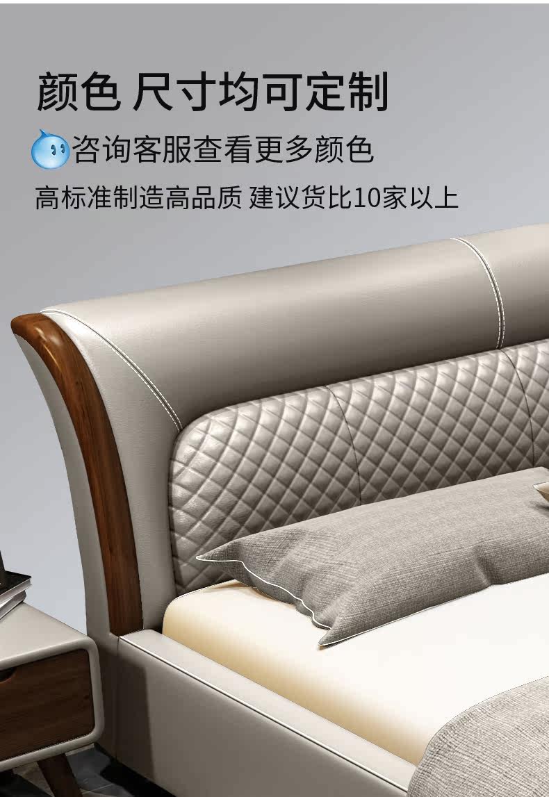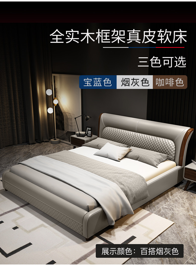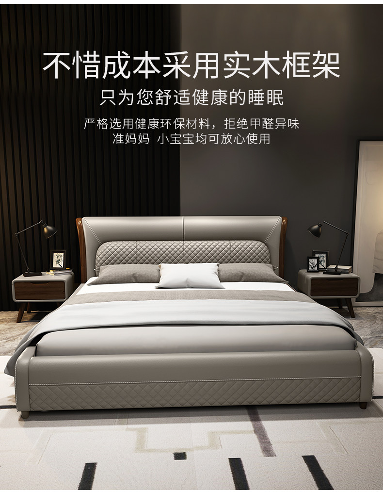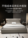 Блестящий из натуральной кожи Кровать главный спал поколение Простая 1,8 м Двуспальная кровать Nordic Light Luxury Wood Mell Apartment Кожаная Свадебная кровать