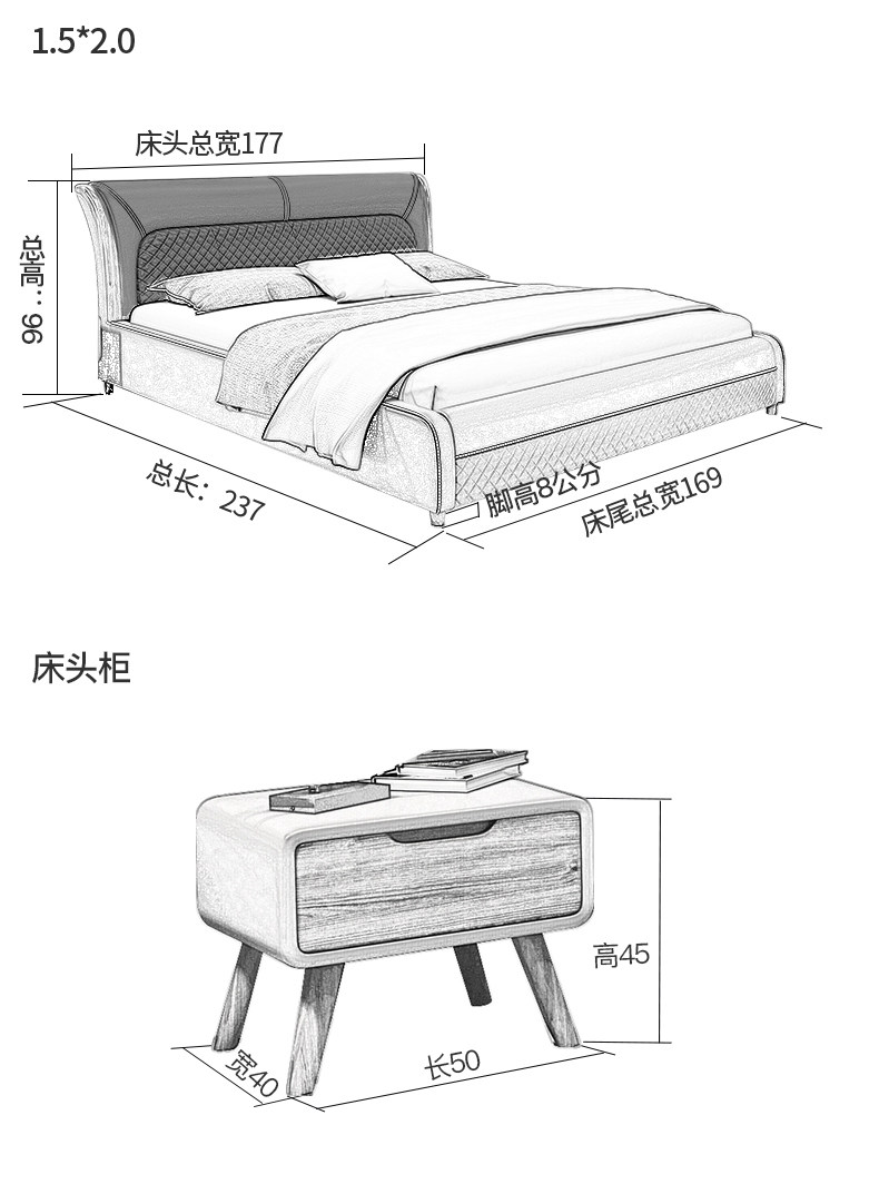 - Из натуральной кожи Голая кровать + латекс-матрас + 1 шт Прикроватный столик