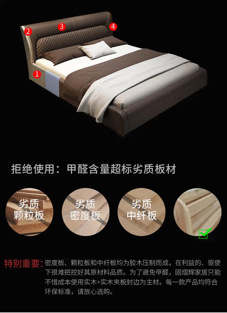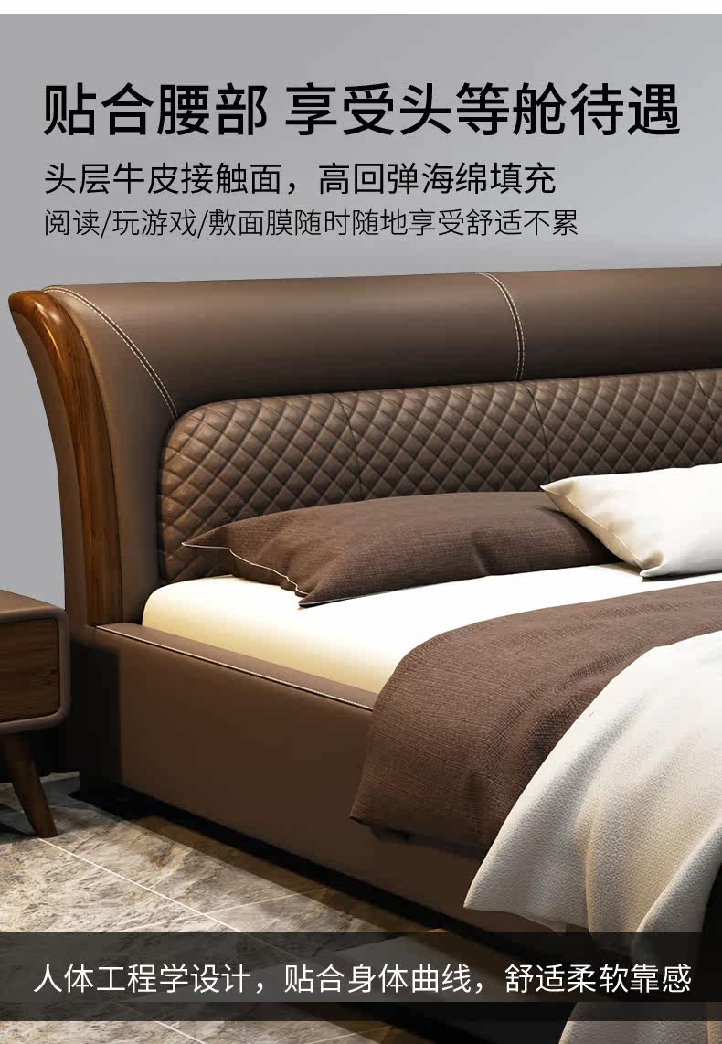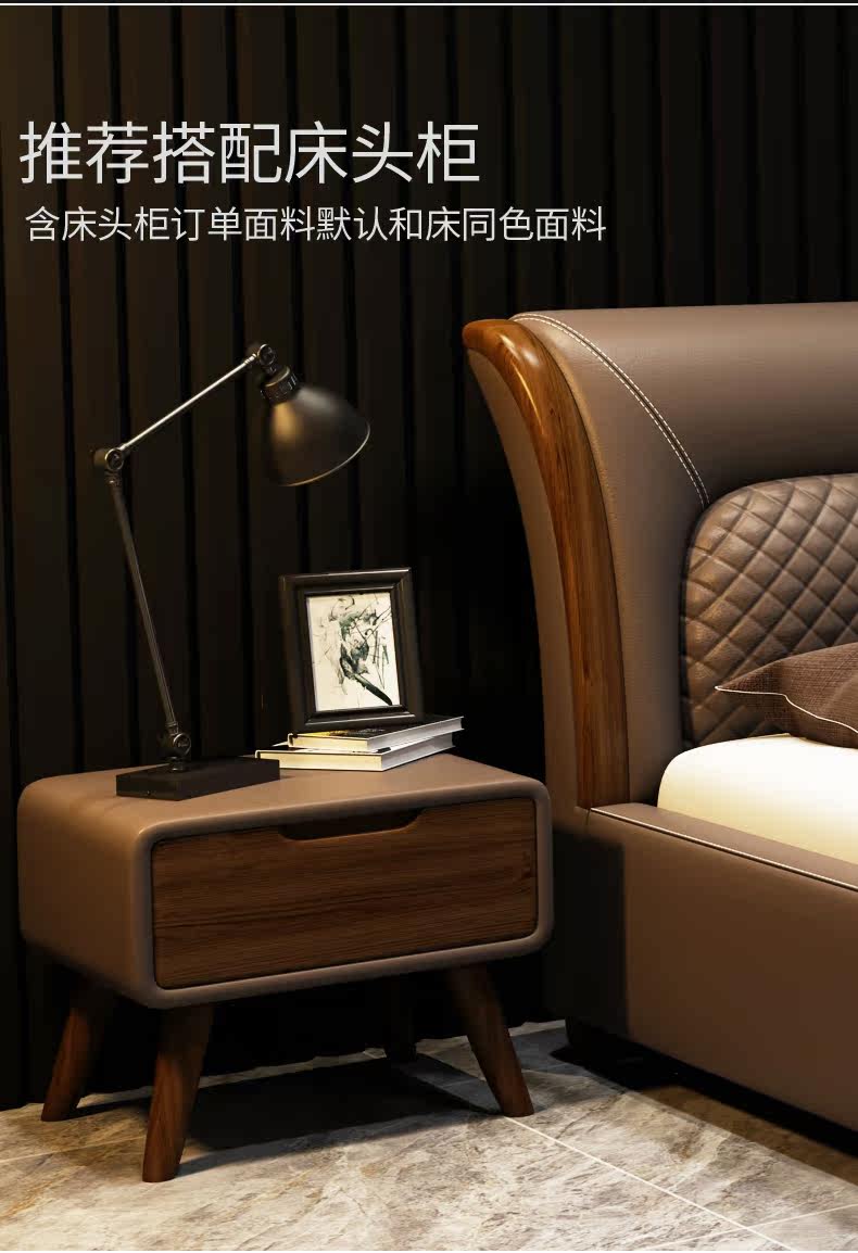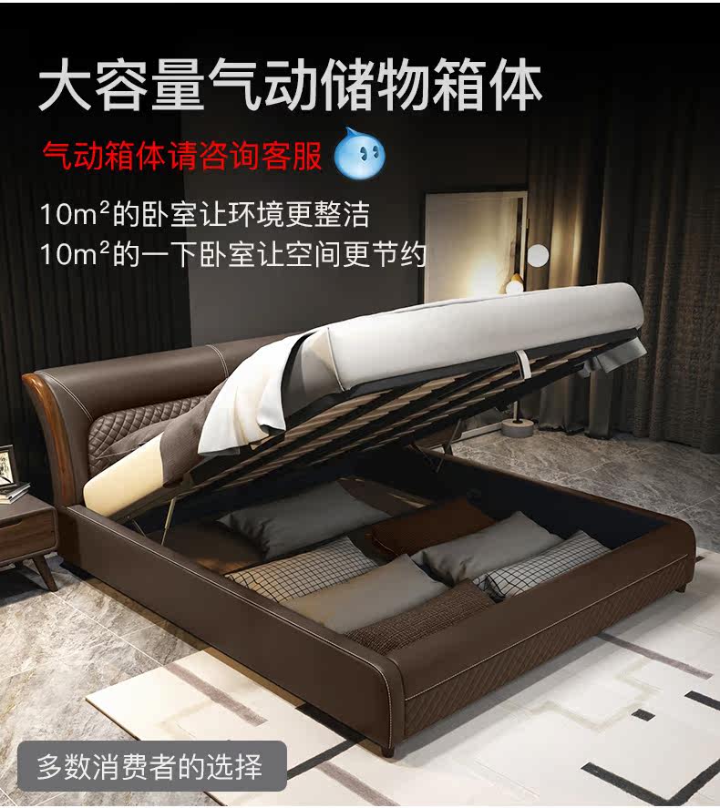 Блестящий из натуральной кожи Кровать главный спал поколение Простая 1,8 м Двуспальная кровать Nordic Light Luxury Wood Mell Apartment Кожаная Свадебная кровать