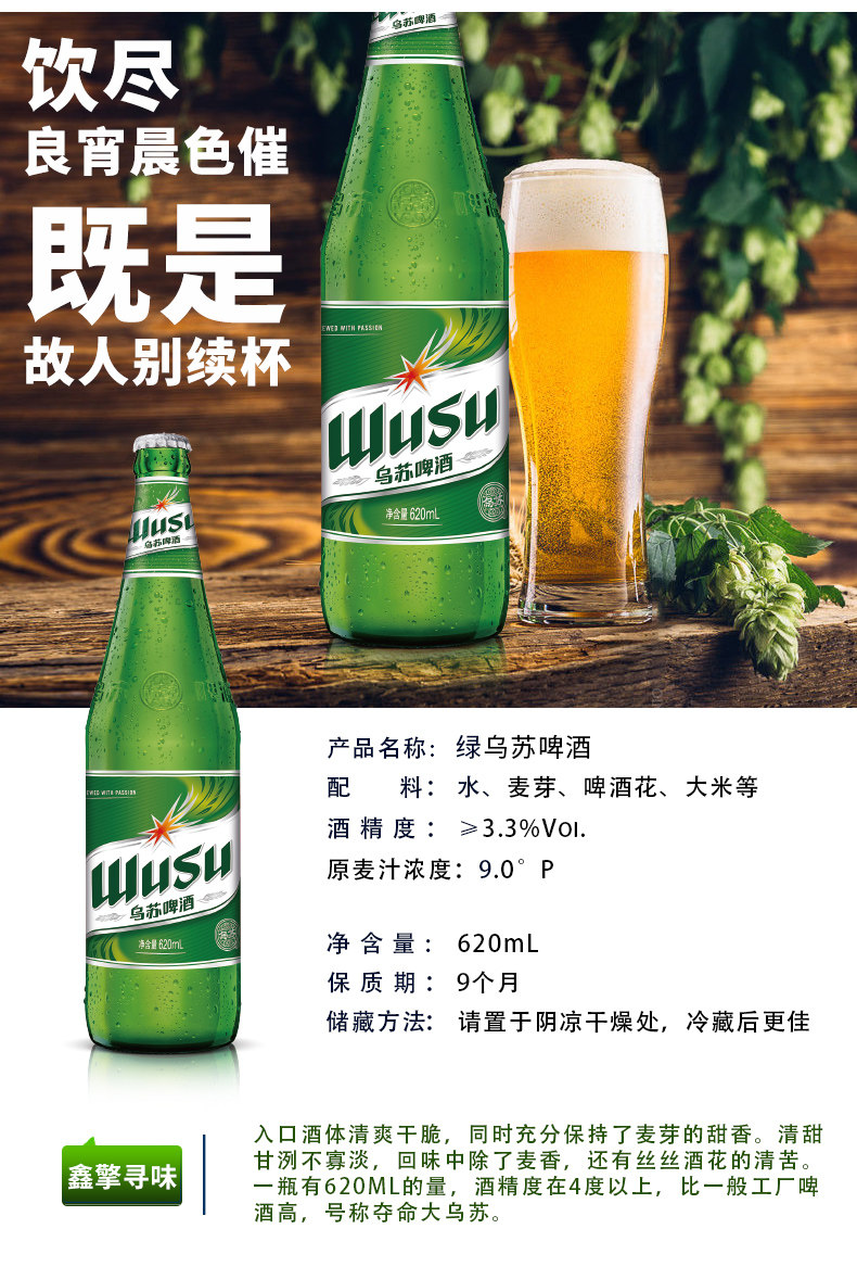 【Usu пиво】 официальный авторизация Смертельный большой пивоварня Wusu красный Usu новый Синьцзян пиво 620 мл*6 бутылок