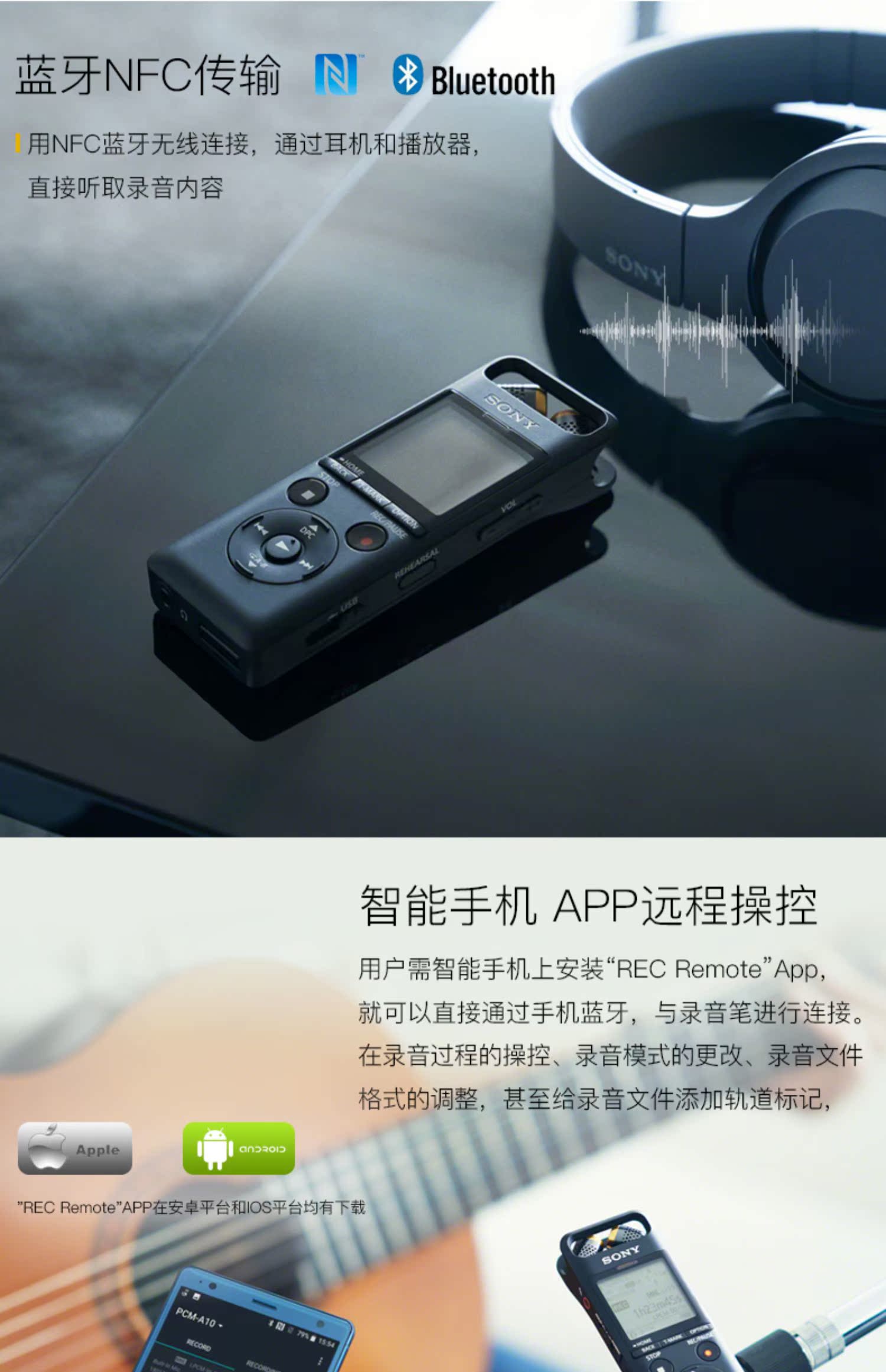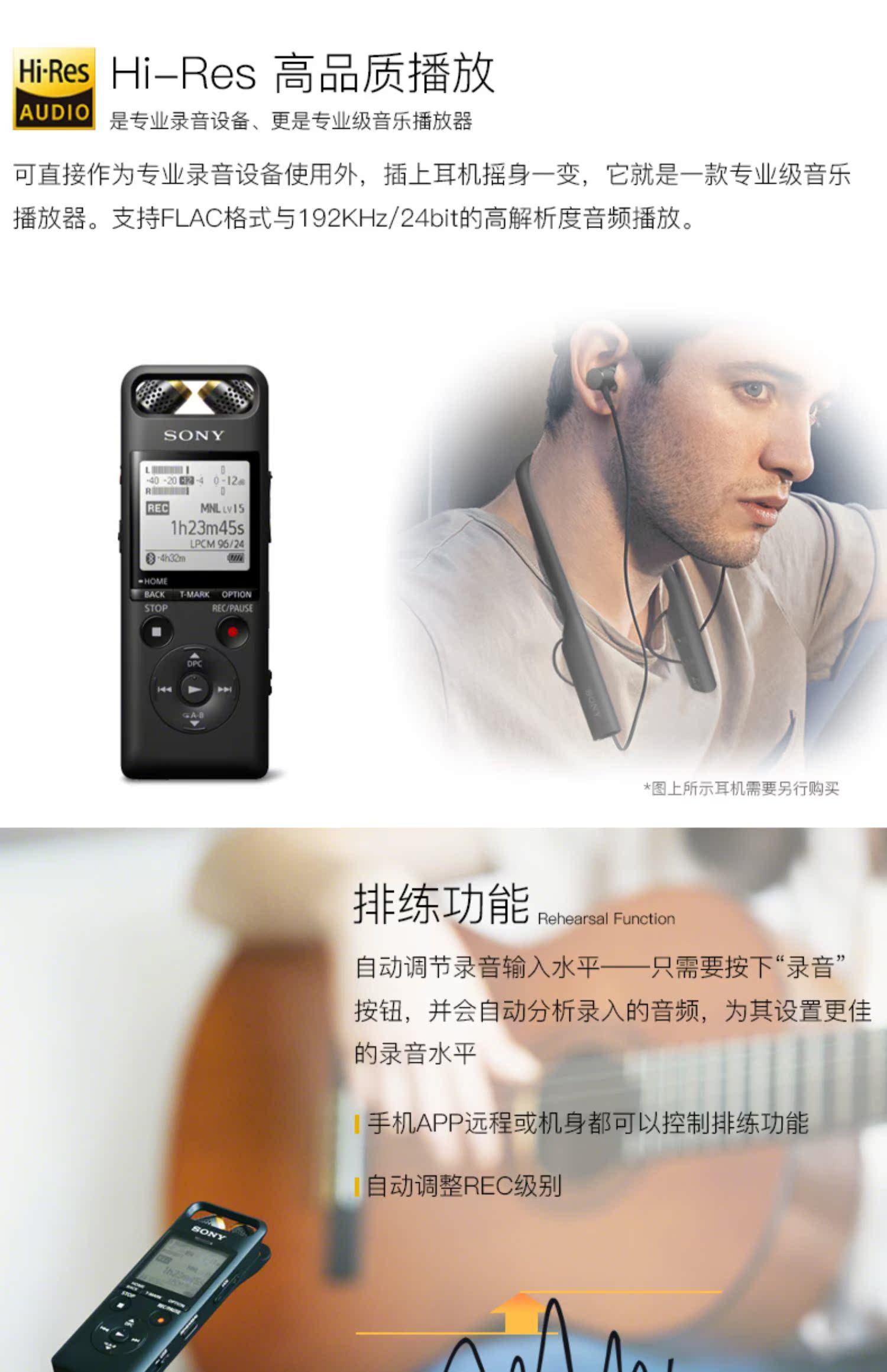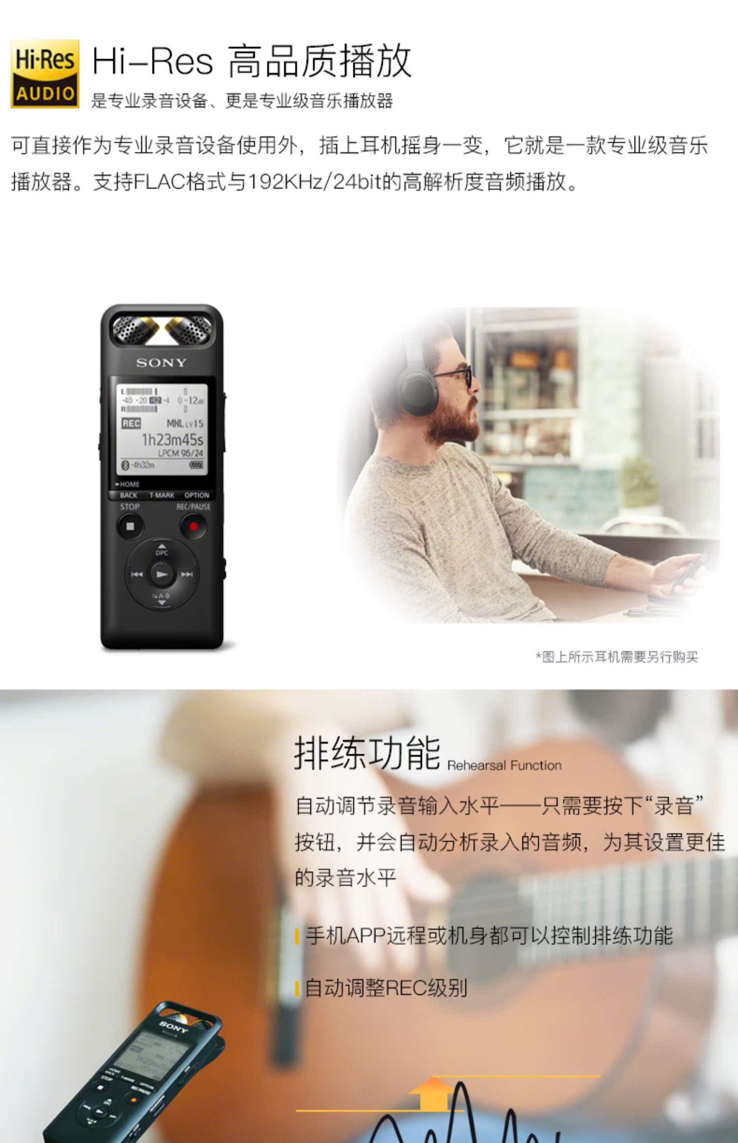 Sony / Sony Recorder PCM-A10 Professional высокая Ясный и шум без Диаграмма персонажа с гитарой, играя в речи мобильный телефон синий Удаленное управление зубами длинный В режиме ожидания большой емкости