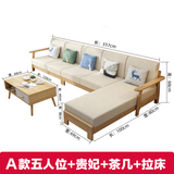 Полностью Комбинированный диван из массива дерева Nordic small apartment now поколение Простая гостиная с протяжкой, кровать для хранения, шезлонг, ткань, журнальный диван