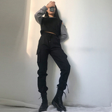 Ins ветер классная девушка цвет "хаки" с карманами Куча трудовых брюк женский высокая Талия Тактика Tide Tide Tide