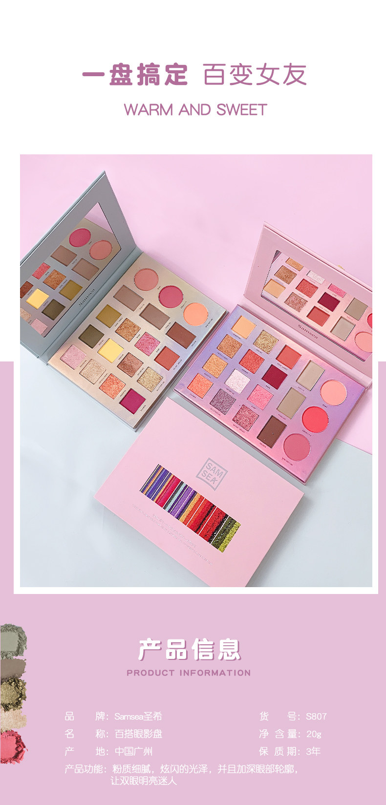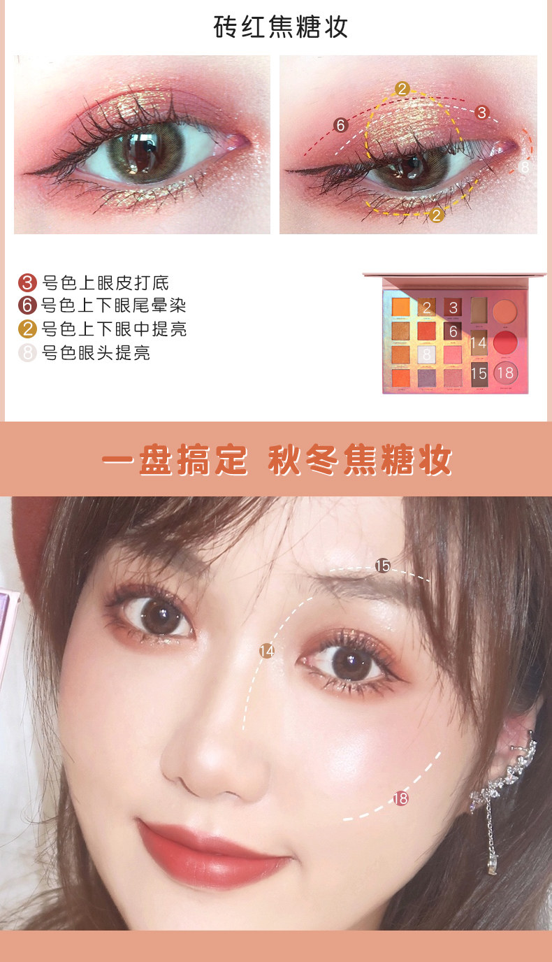 Тени для век Samsea Shengxi Glitter Pearly водонепроницаемый Земля цвета немые щеки красный высокая Легкая интеграция комплект цвет Сковорода для макияжа