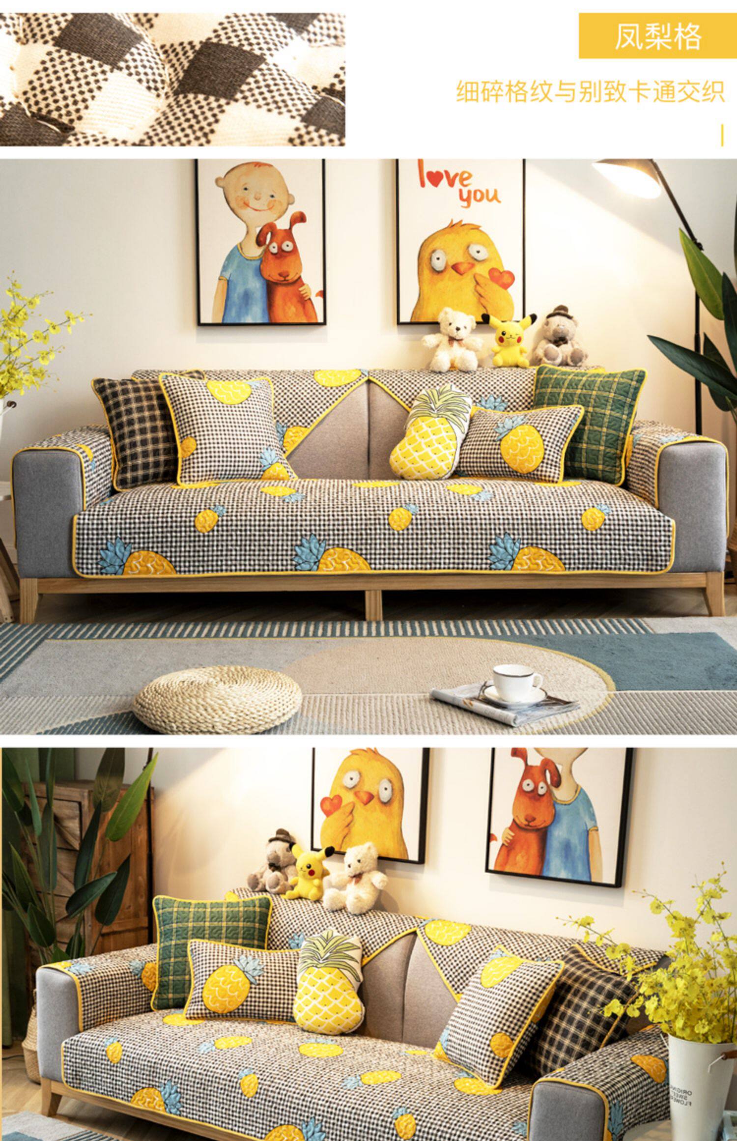 Филиппинская поэзия японский стиль новый Гостиная комбинированная диван Pad клетчатый Набор задней полотенца на четыре сезона Универсальная ткань нескользящие накладка
