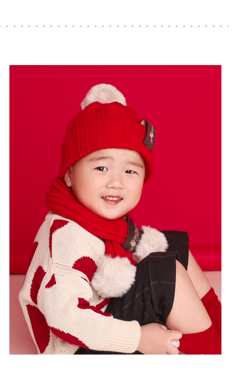 Осень-зима время года детские детские шерстяная пряжа трикотажный шапка шарф Два милых корейская версия шарф удерживающий тепло мужские и женские ребенок комплект