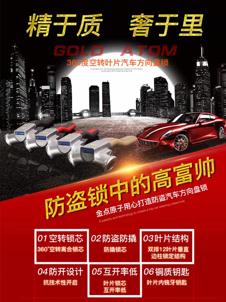 Golden Point Atom C-сорт Пустой замок T-Lock General Anti-Barrel Автомобиль Водовой замок Универсальный замок