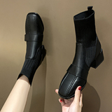 Челси ботинки ЖЕНЩИНА 2021. новая коллекция широкий каблук Тонкий и тонкий сапоги женский осень-зима берцы Женский маленький ребенок замшевый Носки сапоги