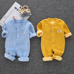 На младенца удерживающий тепло Покрытый замшевый утепленный мужские и женские детские длинный рукав 衣 服. новый беременность на младенца одежда осень-зима