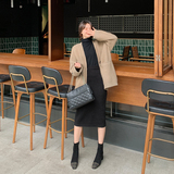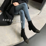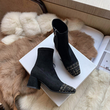 Йили Бежевый 2020 осень-зима сезон новая коллекция ботинки Женская строчка замшевый Женская обувь винтаж Квадратная голова широкий каблук Сапоги скинни