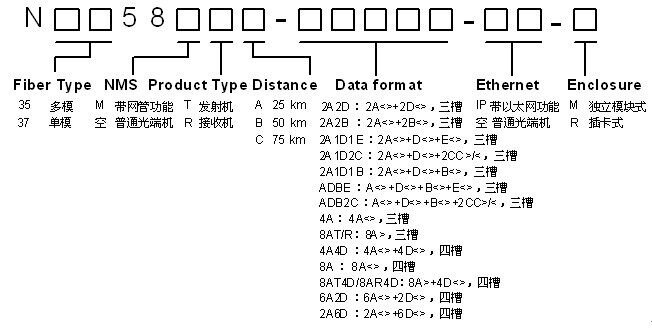 Например: модель | описывать | N3558TA-2A2D | Передатчик, мультимодовый, 8 В>+2A<>+2D<>, Три слота | N3558RA-2A2D | Приемник, мультимодовый, 8V>+2A<>+2D<>, Три слота | N3558TA-ADBE | Передатчик, мультимодовый, 8 В>+A<>+D<>+B<>+E<>, Три слота | N3558RA-ADBE | Приемник, мультимодовый, 8V>+A<>+D<>+B<>+E<>, Три слота | N3558TA-4A | Передатчик, мультимодовый, 8 В>+4A<>, Три слота | N3558RA-4A | Приемник, мультимодовый, 8V>+4A<>, Три слота | N3558TA-8AT | Передатчик, мультимодовый, 8 В>+8A>, Три слота | N3558RA-8AR | Приемник, мультимодовый, 8V>+8A>, Три слота | N3558TA-4A4D | Передатчик, мультимодовый, 8 В>+4A<>+4D<>, Четыре слота | N3558RA-4A4D | Приемник, мультимодовый, 8V>+4A<>+4D<>, Четыре слота | N3558TA-8A | Передатчик, мультимодовый, 8 В>+8A<>, Четыре слота | N3558RA-8A | Приемник, мультимодовый, 8V>+8A<>, Четыре слота | N3758TA-2A2D | передатчик, один Режим, 8 В.>+2A<>+2D<>, Три слота | N3758RA-2A2D | Получатель, один Режим, 8 В.>+2A<>+2D<>, Три слота | N3758TA-ADBE | передатчик, один Режим, 8 В.>+A<>+D<>+B<>+E<>, Три слота | N3758RA-ADBE | Получатель, один Режим, 8 В.>+A<>+D<>+B<>+E<>, Три слота | N3758TA-4A | передатчик, один Режим, 8 В.>+4A<>, Три слота | N3758RA-4A | Получатель, один Режим, 8 В.>+4A<>, Три слота | N3758TA-8AT | передатчик, один Режим, 8 В.>+8A>, Три слота | N3758RA-8AR | Получатель, один Режим, 8 В.>+8A>, Три слота | N3758TA-4A4D | передатчик, один Режим, 8 В.>+4A<>+4D<>, Четыре слота | N3758RA-4A4D | Получатель, один Режим, 8 В.>+4A<>+4D<>, Четыре слота | N3758TA-8A | передатчик, один Режим, 8 В.>+8A<>, Четыре слота | N3758RA-8A | Получатель, один Режим, 8 В.>+8A<>, Четыре слота |