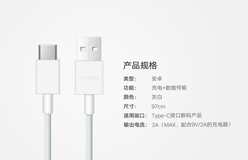 Цвет: Vivo в оригинальной упаковке Type-C 2A флеш-зарядка, 9 В / 2А(18w)Flash Charger+Type-C 2A флэш-зарядкаДлина: 1m